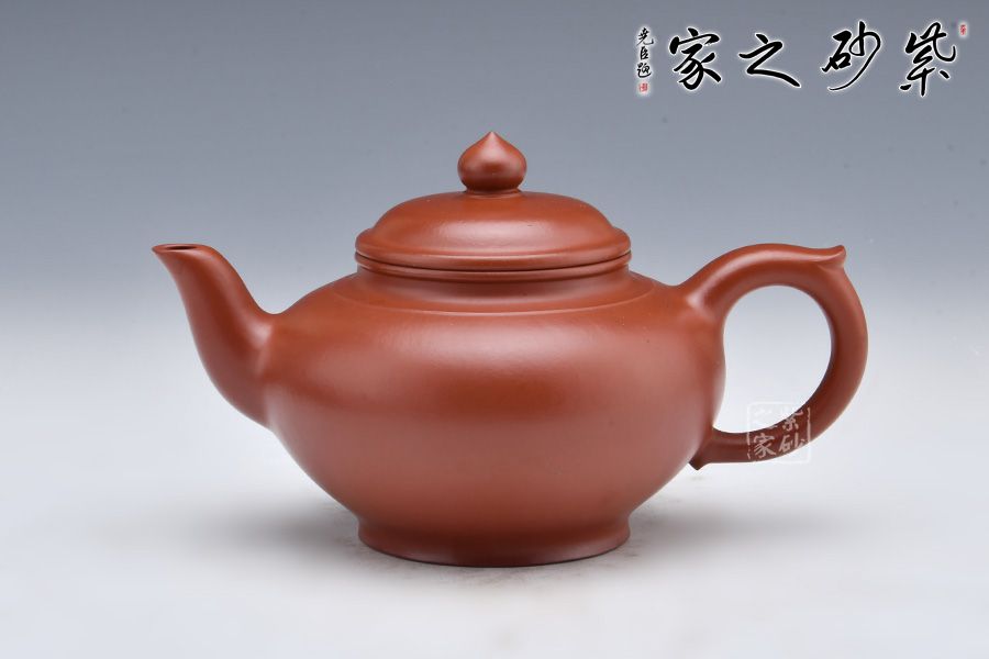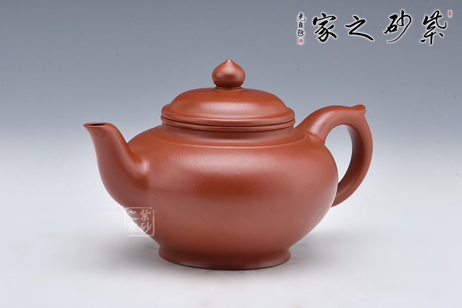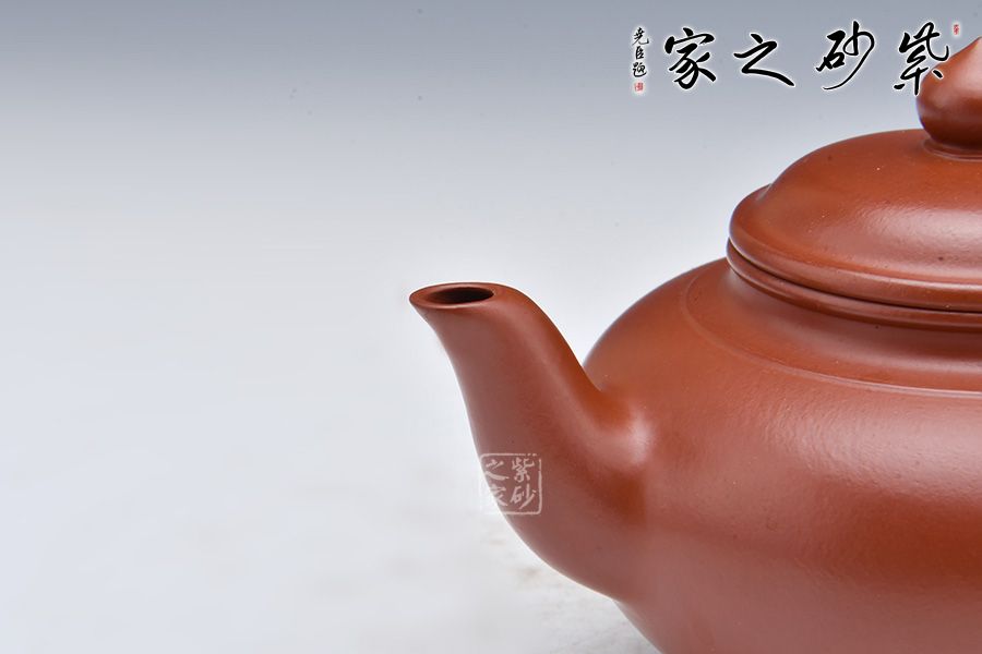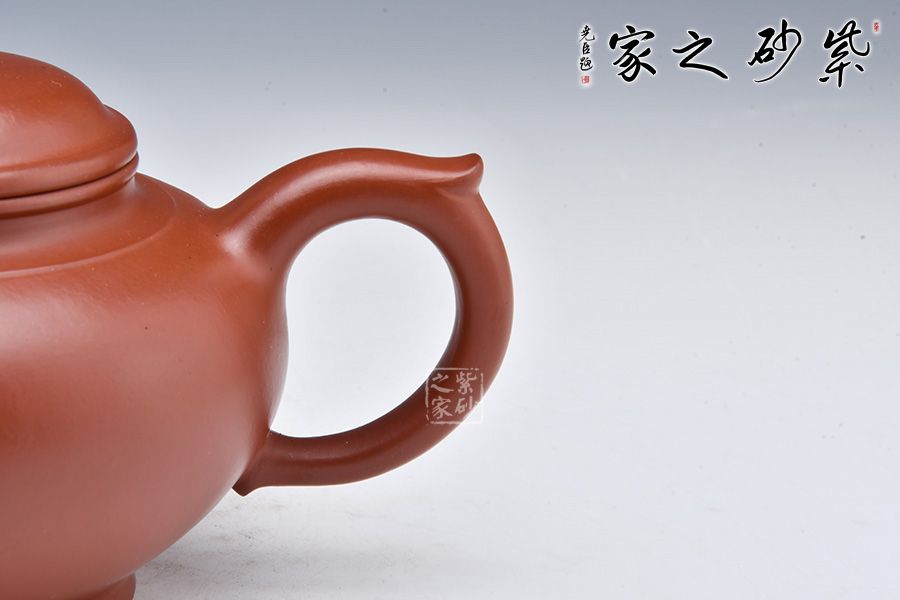 笑櫻壺是紫砂經(jīng)典壺型之一,經(jīng)久不衰。此壺精選大紅袍為胎,泥色亮麗,器型端莊。整器造型簡潔、曲線圓韻、過渡自然、轉(zhuǎn)折流暢。壺身呈扁圓狀,由上而下漸收斂至圈足;三彎壺嘴順勢而出;豐肩束頸,上下口沿圓潤飽滿、嚴(yán)絲合縫,壺蓋弧面與壺身弧面銜接自然、一氣呵成;耳把勻勢而起,飾一截如意,極為優(yōu)雅。整壺賞用皆宜,值得收藏。