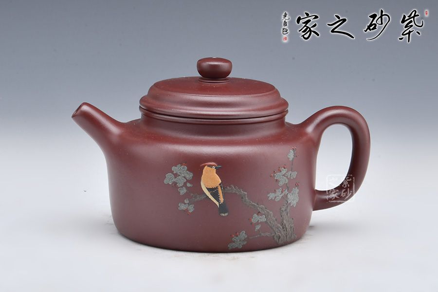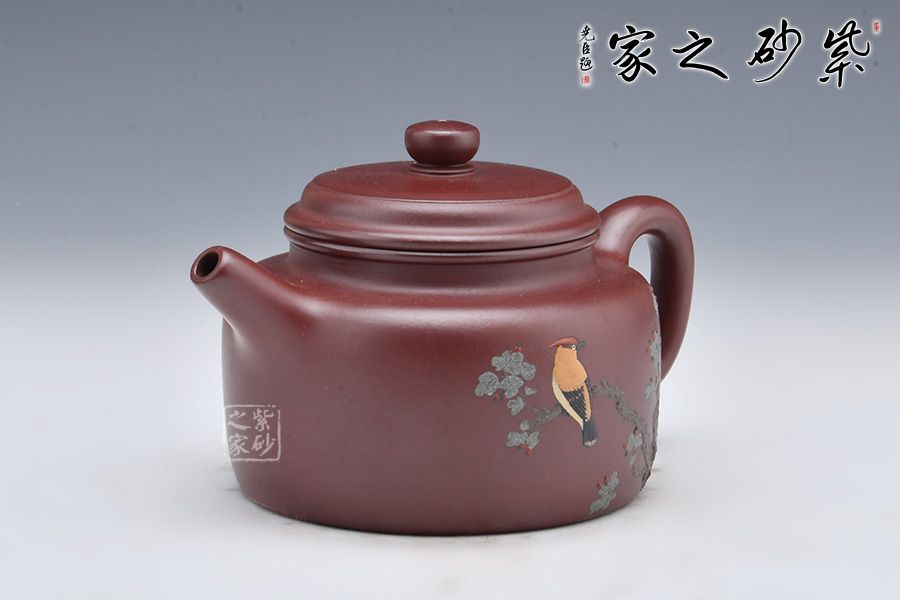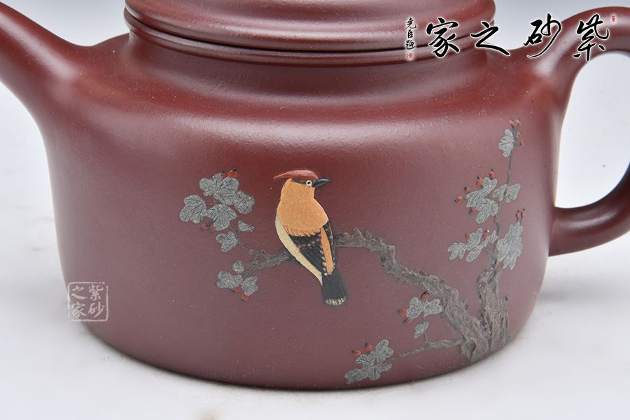 壺身泥繪裝飾,一只畫眉鳥立于枝頭,整體精美而又自然。此乃佳品一把,喜歡的壺友需要把握哦!