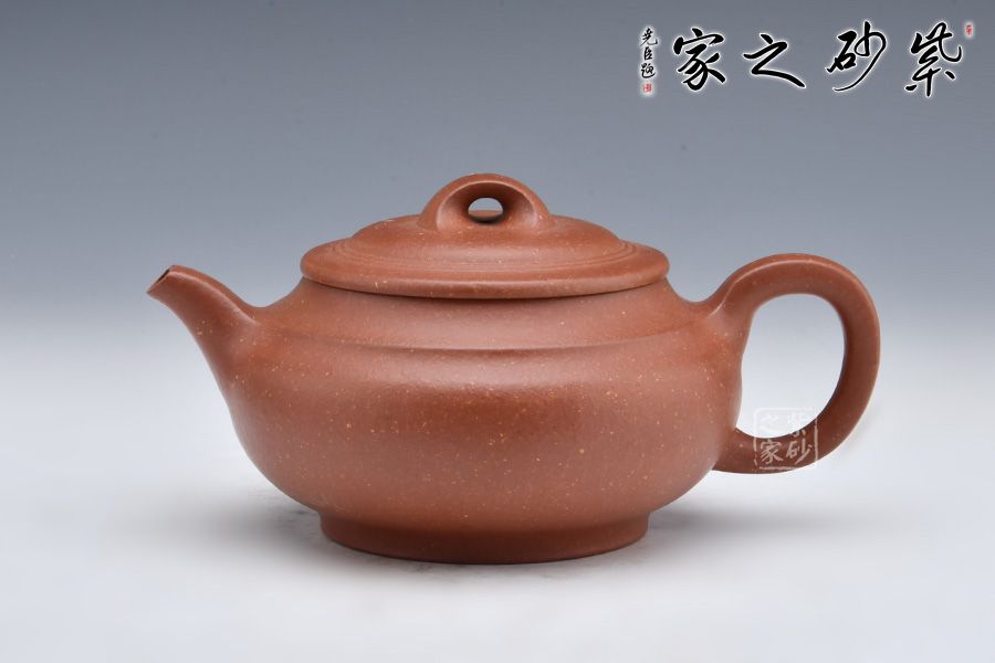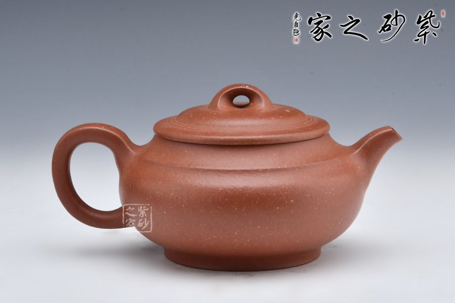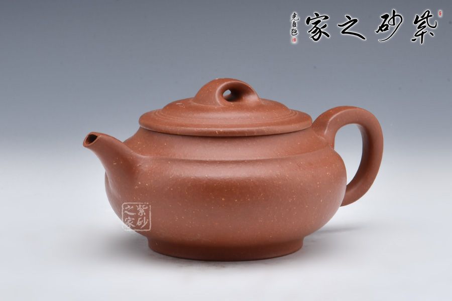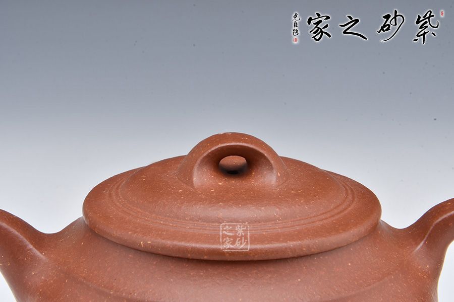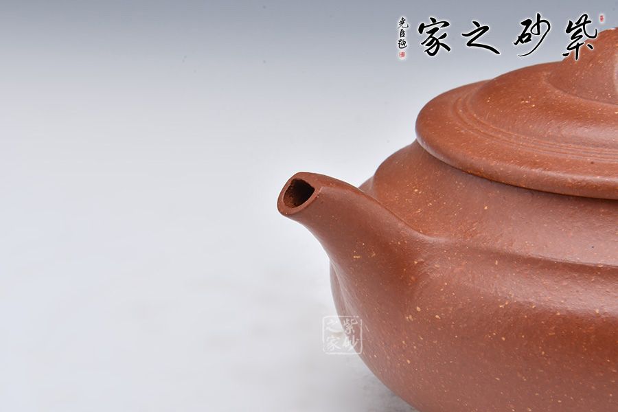 壺身圓潤,端莊大氣;壓蓋設(shè)計與和壺口嚴(yán)密結(jié)合,壺肩到壺身處有一梯度轉(zhuǎn)接;一彎流,出水爽利,耳把拿捏舒適; 壺底有一圓盤接底,增添了整個壺的穩(wěn)重之感,佳作一把。