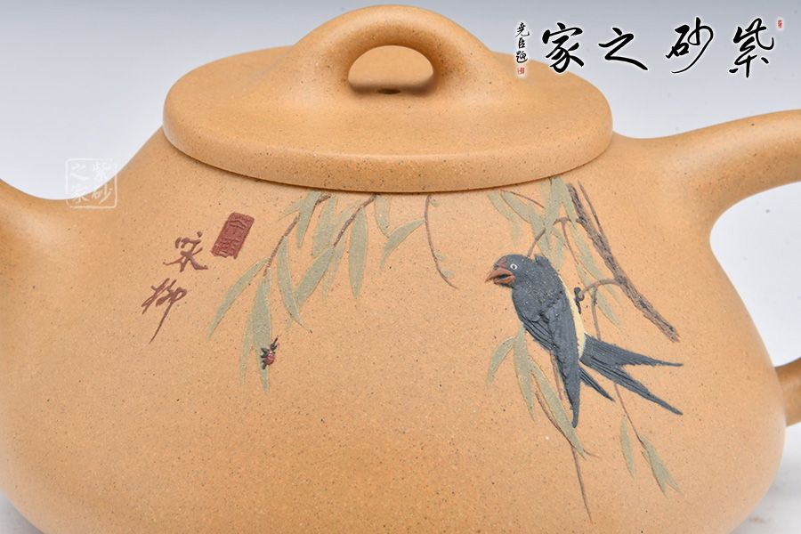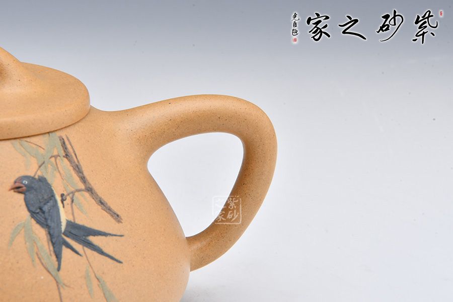 此外,壺身泥繪裝飾,幾支柳枝迎風(fēng)飄蕩,一只燕子駐足,享受徐徐微風(fēng),一副春天美景映入眼簾。300cc的黃金容量,是一把非常實用的品茶利器。
