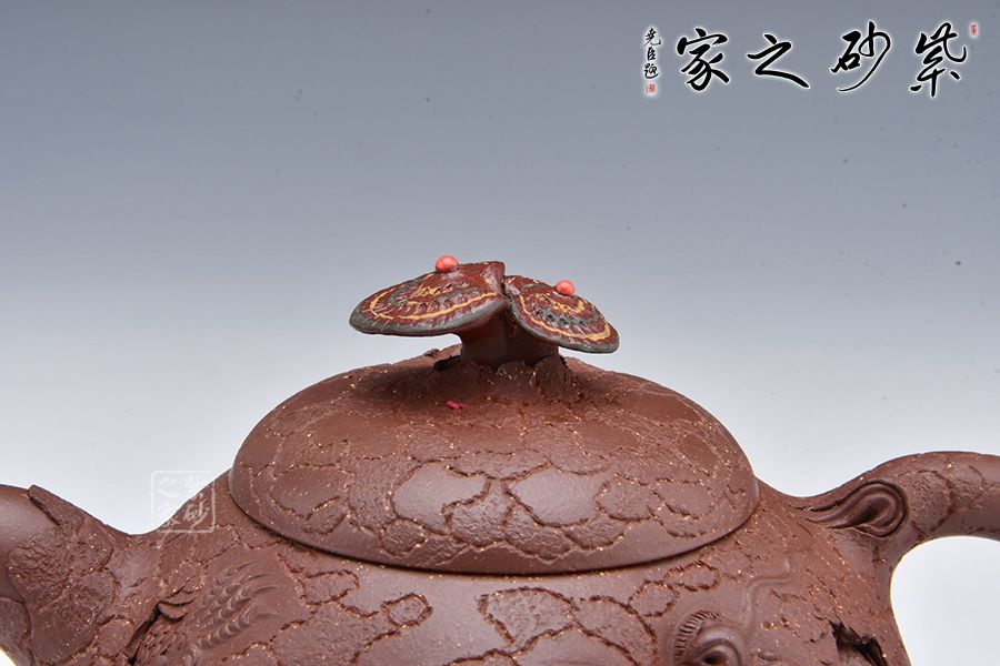 靈芝隱龍供春壺精選底槽清泥料,許美勤老師全手工制作。