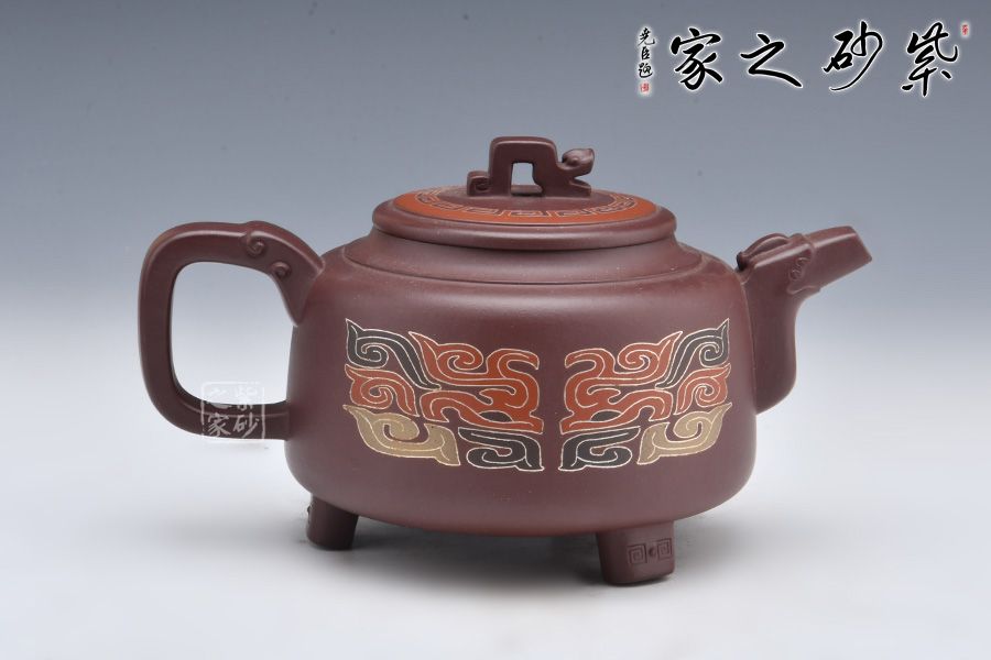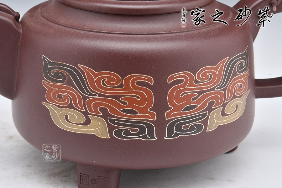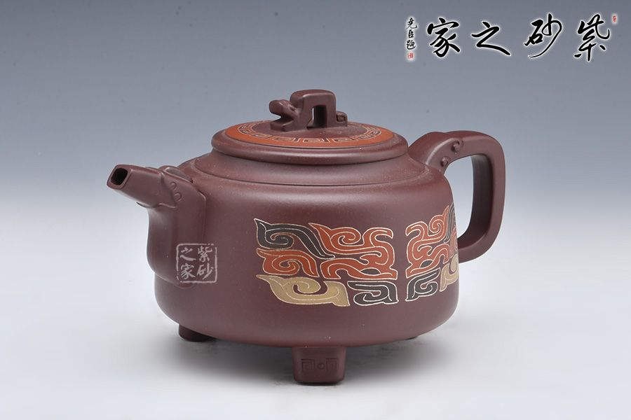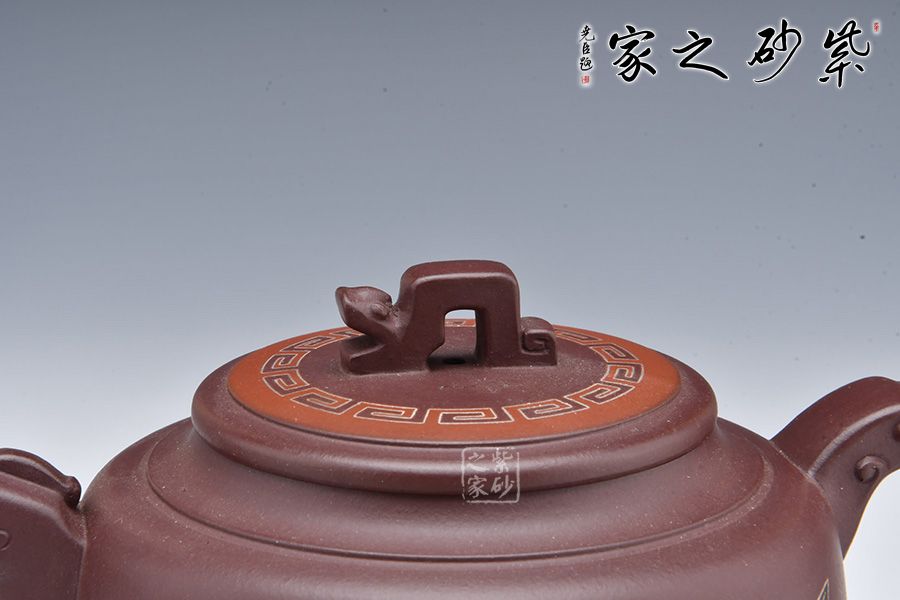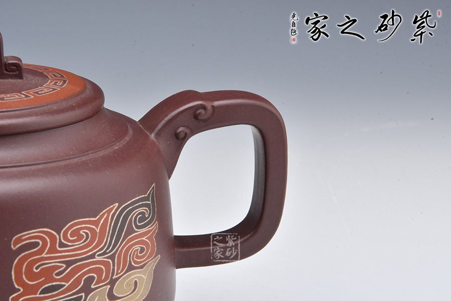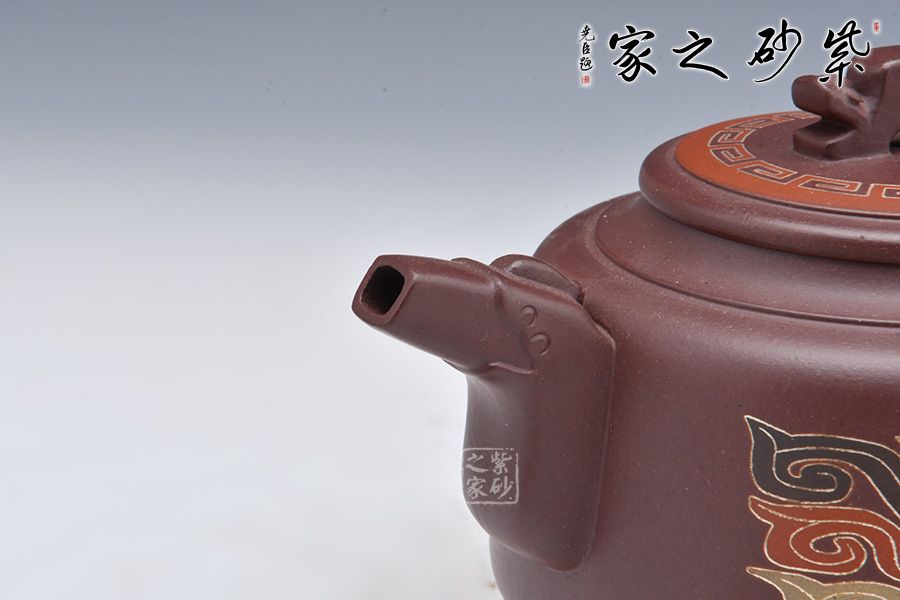 此壺為作者選用老紫泥精制而成,泥色溫潤(rùn)雅致,造型簡(jiǎn)約大氣。壺腹飽滿,橋鈕、平蓋更顯古雅韻味。龍形壺鈕,大氣磅礴!龍首為嘴,出水爽利,龍尾為把,端握舒適。姿態(tài)灑脫,氣勢(shì)雄渾,400cc容量,是一把兼具實(shí)用性與藝術(shù)性的殺茶利器。