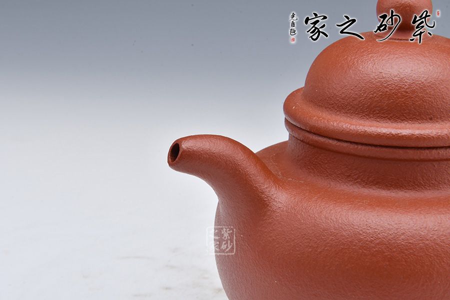 特點:質(zhì)感綿密、緊實細緻,持之扎實沉重、紅潤豔麗,泥中極品,無以倫比;泥胚含少許原礦顆粒,沖淋熱水后色變極大,呈紅中帶紫,養(yǎng)壺易現(xiàn)“包漿”之美。