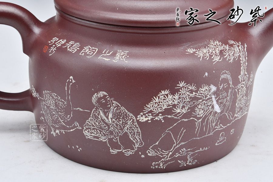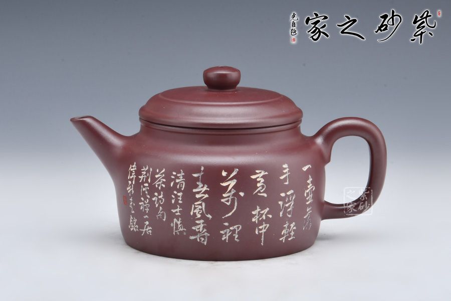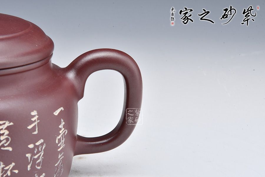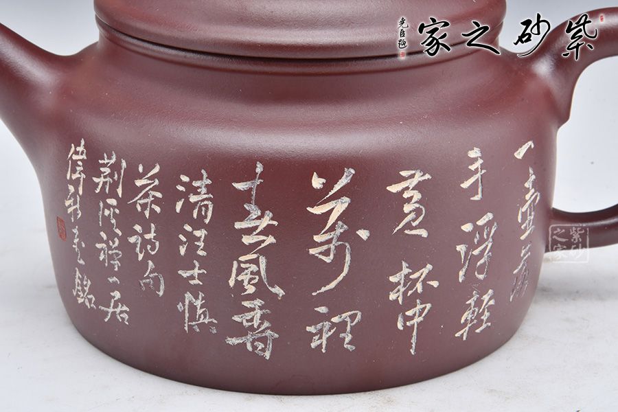 德鐘是紫砂光素器中的經(jīng)典器型之一,這款“德鐘”器形端莊穩(wěn)重,比例協(xié)調(diào),結(jié)構(gòu)嚴謹,造型簡潔質(zhì)樸,令人沉醉在其典雅的氣韻之中慢慢回味。壺口蓋直而且緊,無落帽之憂。壺嘴壺把舒曲自然,宛若從壺體中天然生出一般。壺身刻繪:一壺落手浮輕黃,杯中萬里春風香。此乃佳品一把,喜歡的壺友需要把握哦!