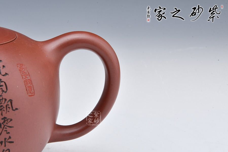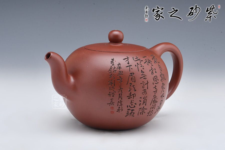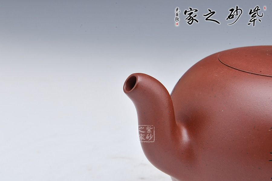 此壺百目底槽清制成,色澤古樸,泥料細膩。壺體似圓球形,無頸,三彎流,口蓋為嵌入式,小圓珠鈕,為傳統(tǒng)紫砂造型。形制渾圓可喜,造型又如同一顆珍珠般珠圓玉潤,飽滿剔透,惹人喜愛。