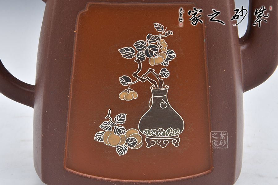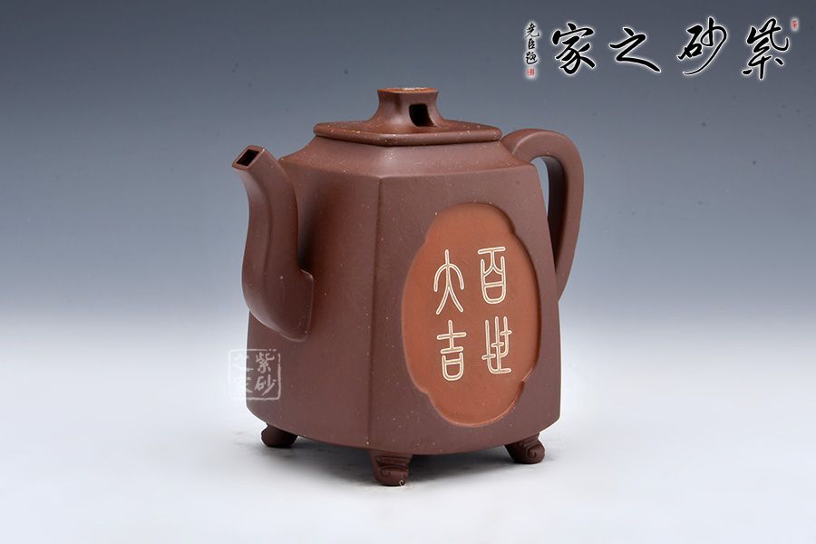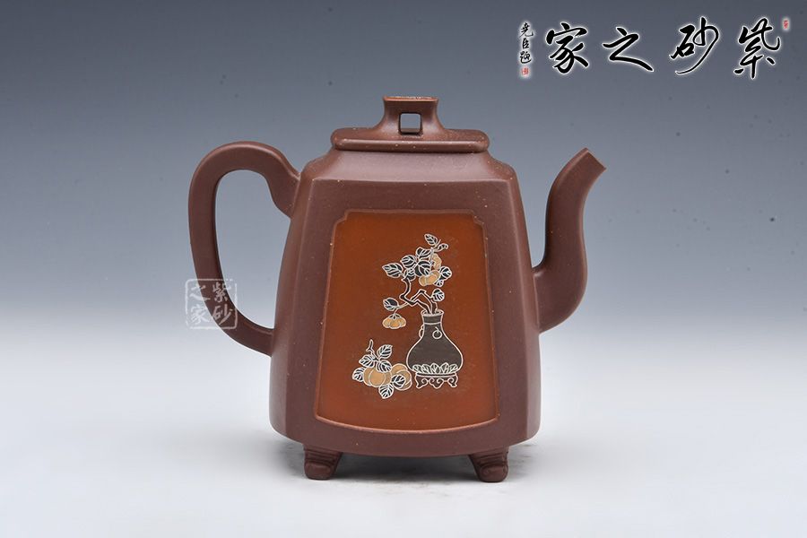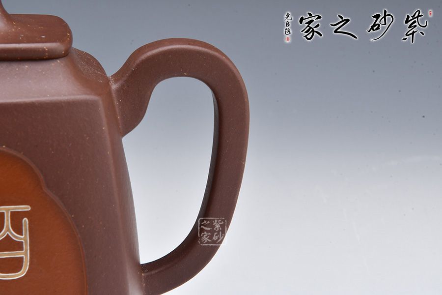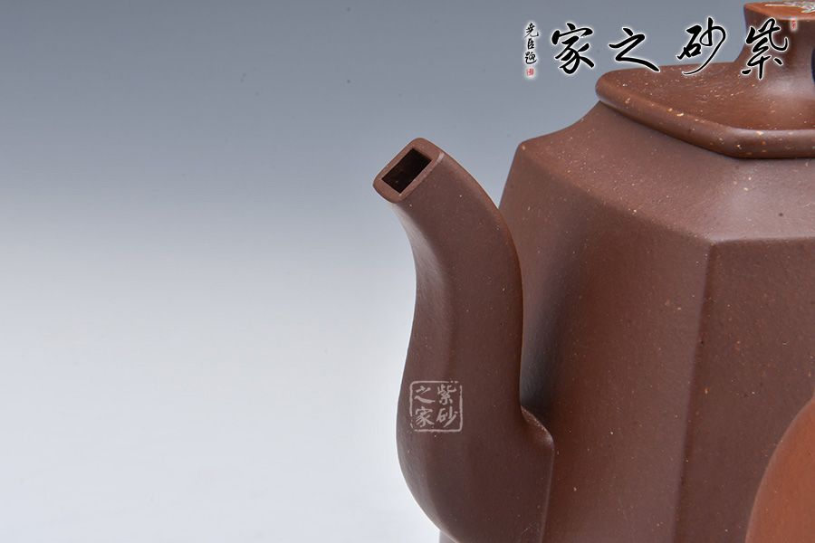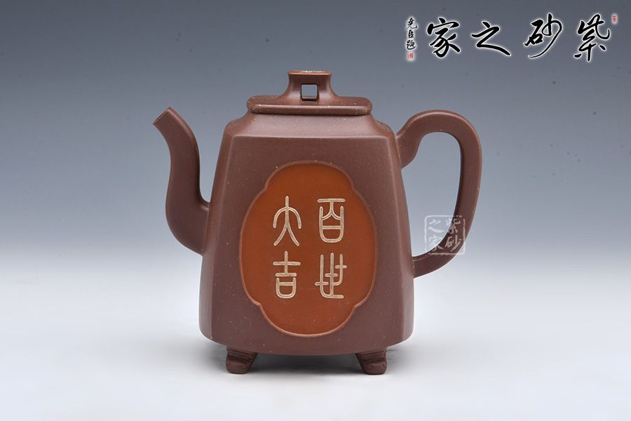 四方致祥壺是許美勤老師精選紫玉金砂泥料為胎,全手工制作而成。壺身四方,線條流暢,三彎嘴,曲折上揚(yáng),出水爽利;耳把略聳,呼之對(duì)應(yīng);壓蓋嚴(yán)絲合縫,拱橋形鈕,矗立于壺蓋,提綱挈領(lǐng)一般,確立了壺的“身姿”;四鼎足挺拔壺身,值得珍藏!