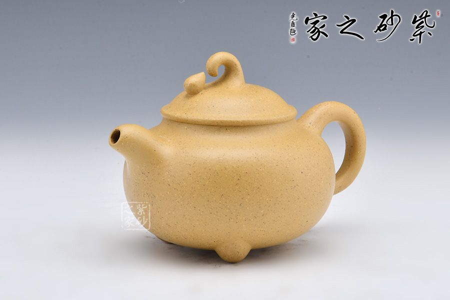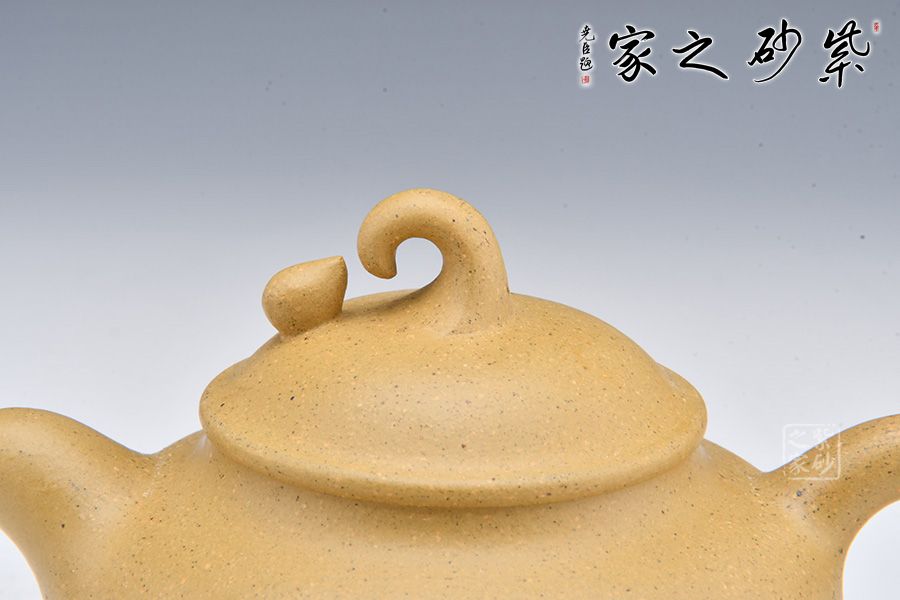 整壺芝麻茄段制作而成,色澤古樸,端莊大氣。此壺是許美勤老師的國(guó)工晉級(jí)作品,更榮獲專(zhuān)利證書(shū),意義非凡。壺身圓潤(rùn)有型,一彎嘴出水流暢,耳把拿捏舒適,壓蓋設(shè)計(jì),嚴(yán)絲合縫,水滴壺鈕十分具有特色,三鼎足挺拔壺身。