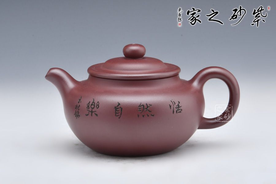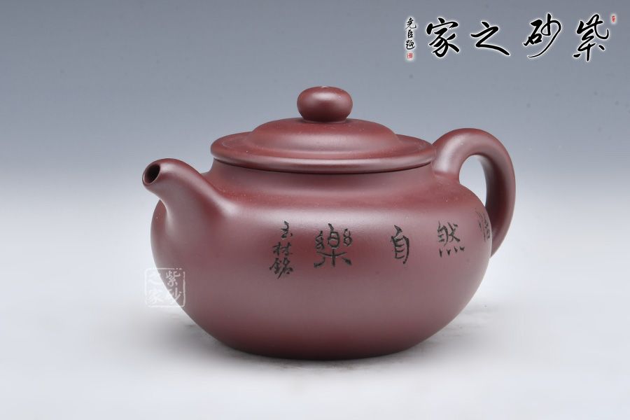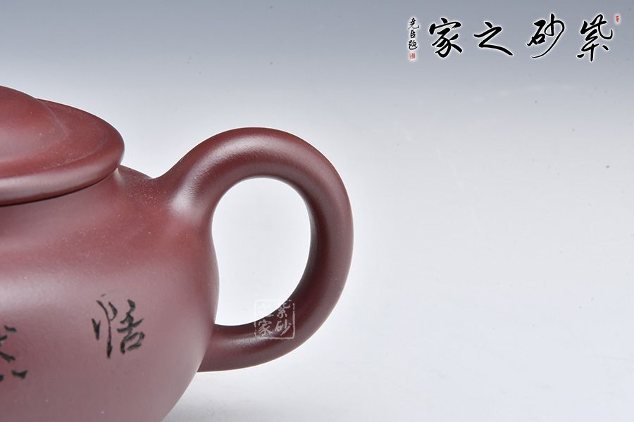 “扁福壺”形似“仿古壺”,采用龍血砂制作而成,古樸穩(wěn)重。
