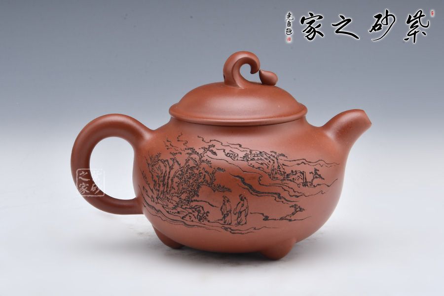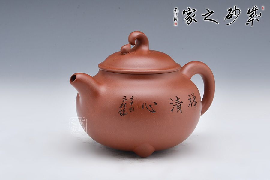 整壺底槽清制作而成,色澤古樸,端莊大氣。此壺是許美勤老師的國工晉級作品,更榮獲專利證書,意義非凡。壺身圓潤有型,一彎嘴出水流暢,耳把拿捏舒適,壓蓋設(shè)計,嚴(yán)絲合縫,水滴壺鈕十分具有特色,三鼎足挺拔壺身。此外,壺身雙料大師邱玉林老師題字,整壺強強聯(lián)合,升值加倍!