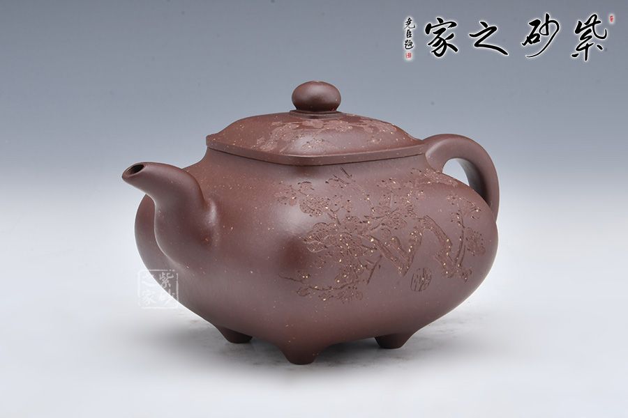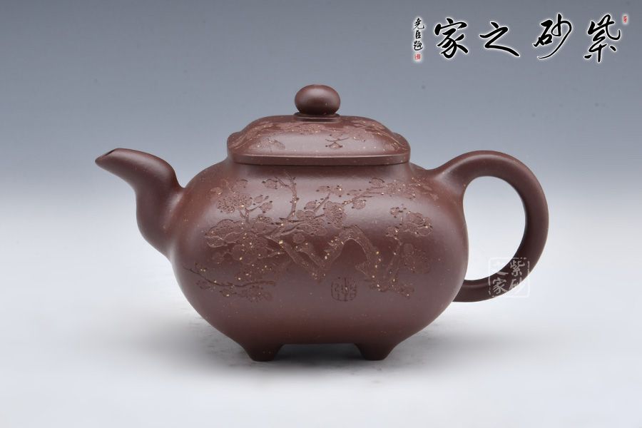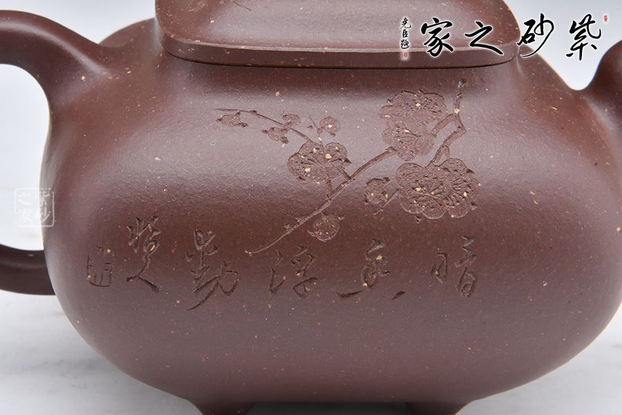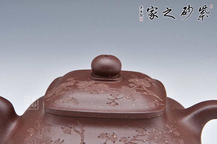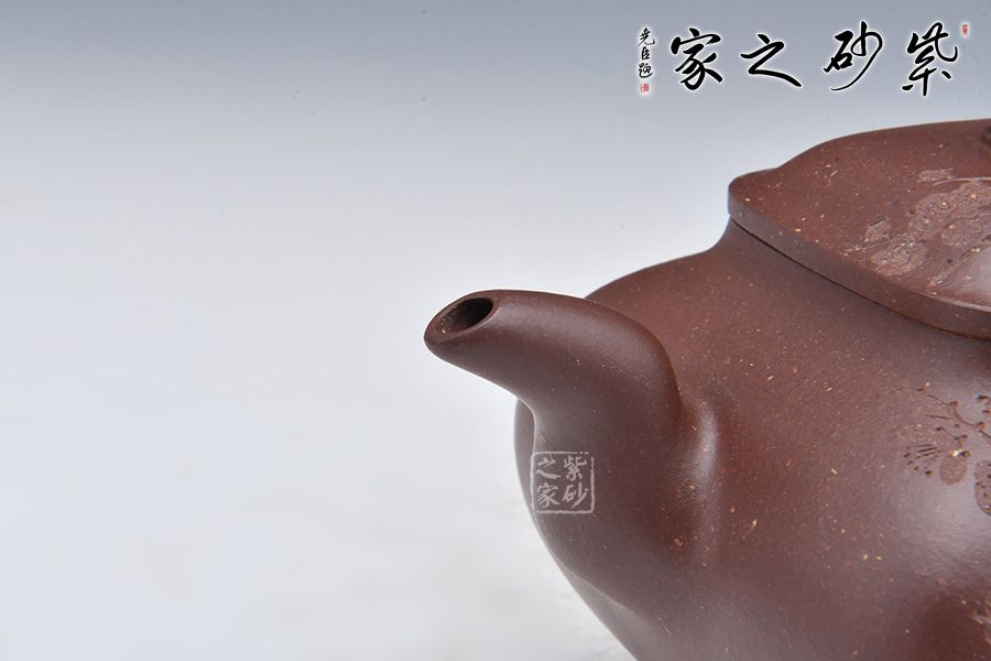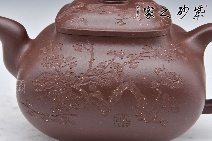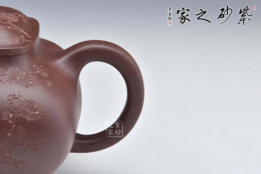 壺身由石陶女兒朱芊芊刻繪“暗香浮動”,周身有刻繪枝枝梅花,若因若無的香氣飄然而至。做工精細,渾若天成,賞用皆宜,值得收藏。
