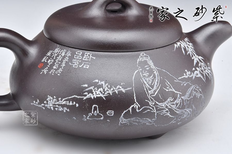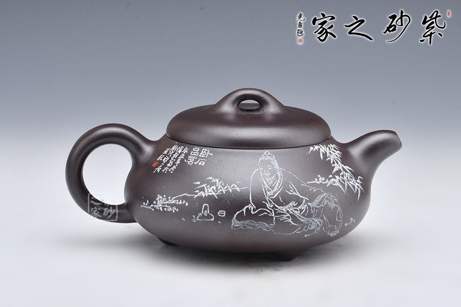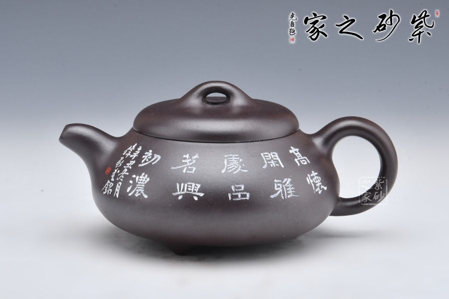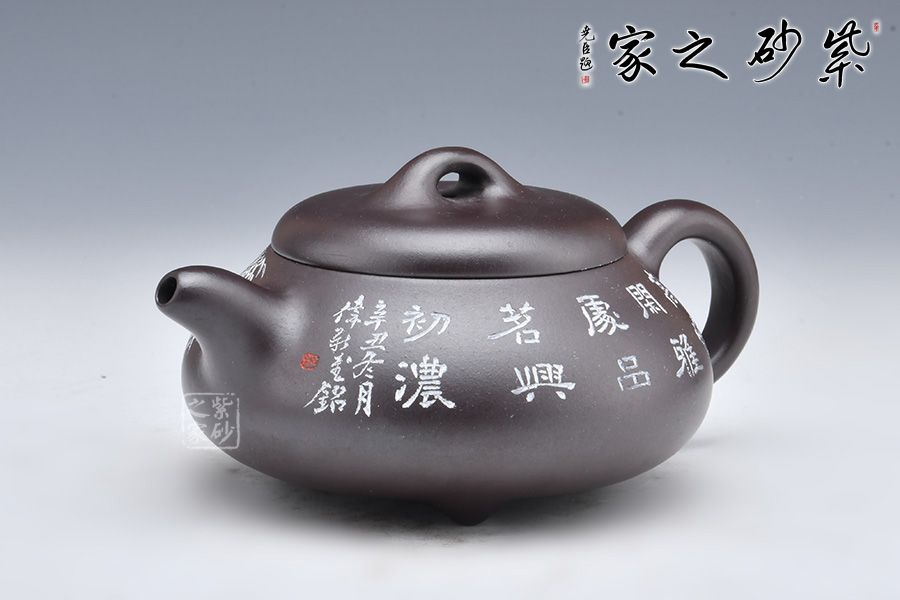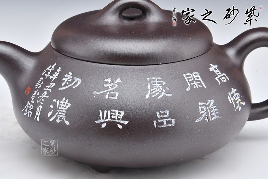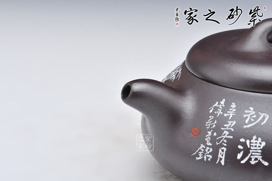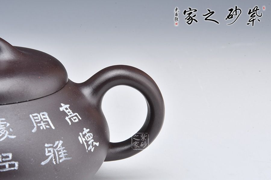 得福壺是由許美勤老師全手工精制而成,選用金龍血為胎,溫潤如玉,美不勝收! 漢棠石瓢顧名思義乃是徐漢棠大師制作的器型,該壺的造型在師承顧景舟大師的基礎上加以變化、創(chuàng)新,繼承了景舟石瓢的剛勁、挺直的骨架,添加了幾分豐滿,使之有骨有肉,溫潤細致。張流、把、鈕、足等各處細節(jié)與壺身的銜接處理更加到位,工藝精湛自不必多說。