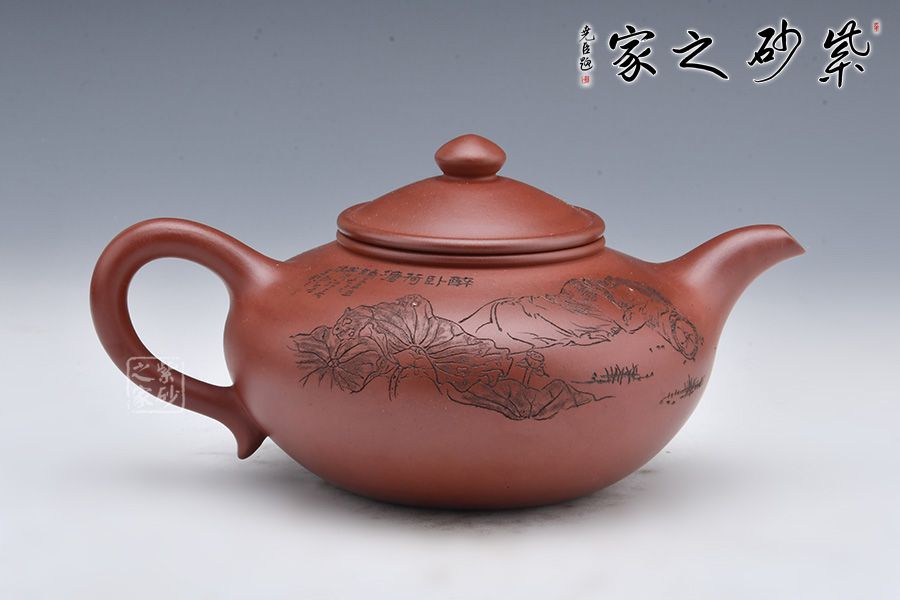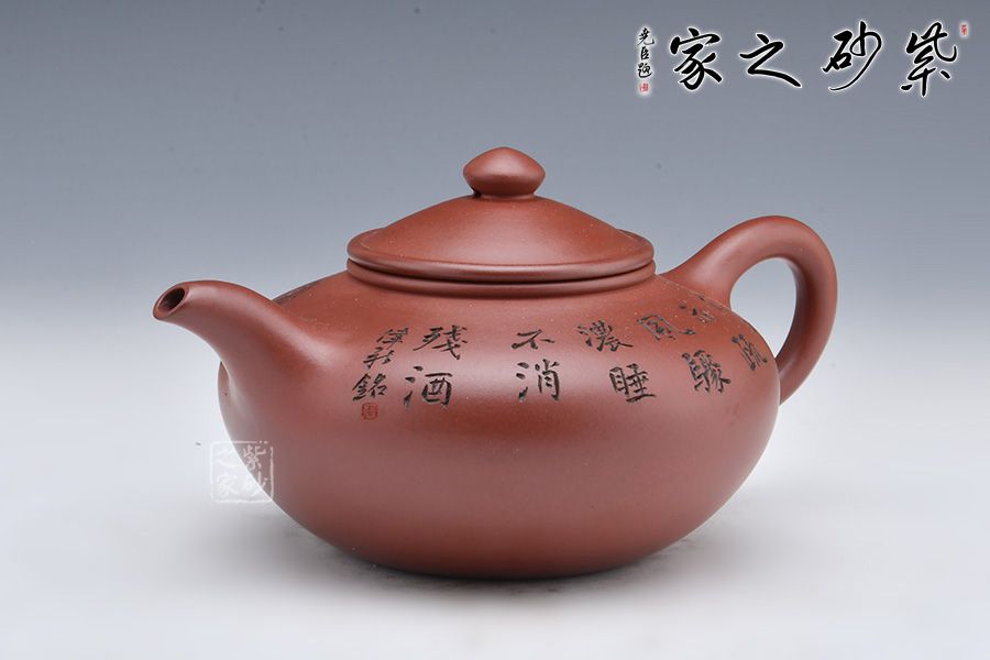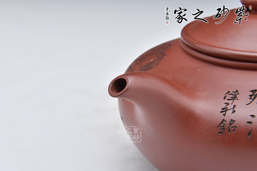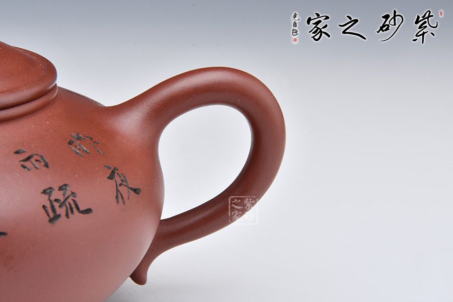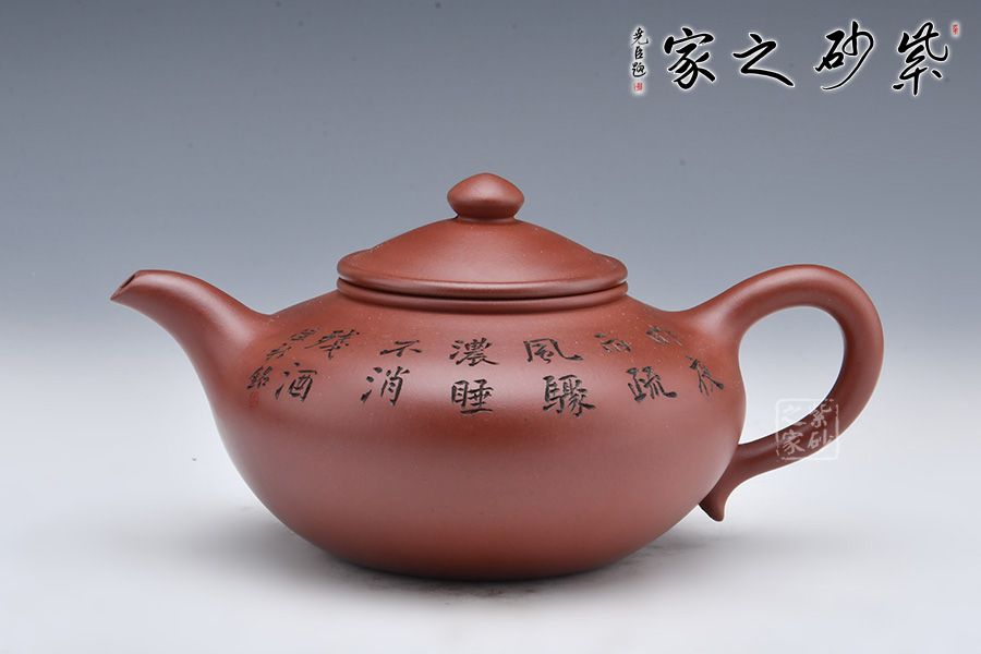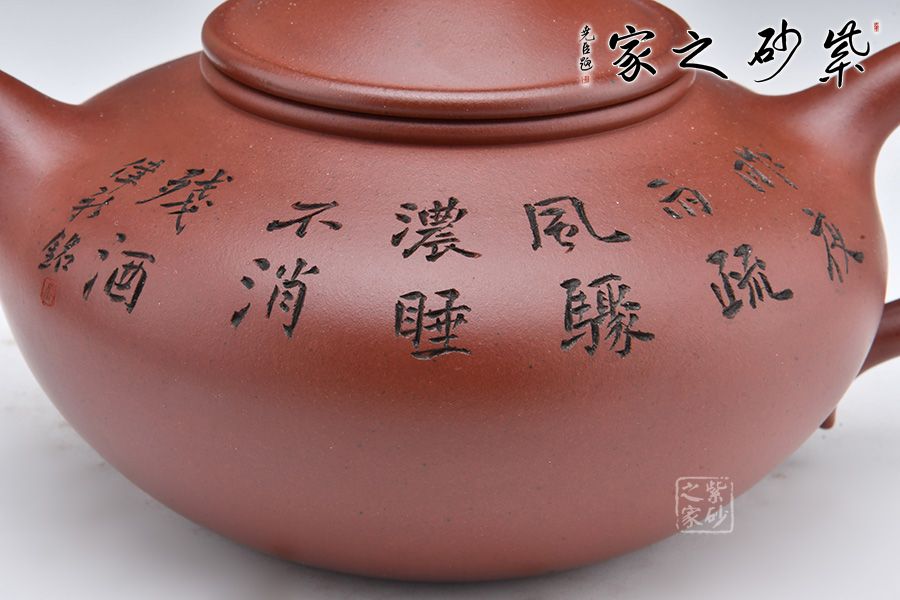 整器端莊大氣,選用老師加藏泥料底槽青制成,好泡養(yǎng)。壺嘴、壺把暗接壺身,二彎嘴出水爽利,耳把拿捏舒適、順手。壺蓋似斗笠,小巧可愛。 壺身刻繪“昨夜雨疏風驟,濃睡不消殘酒壺身”。