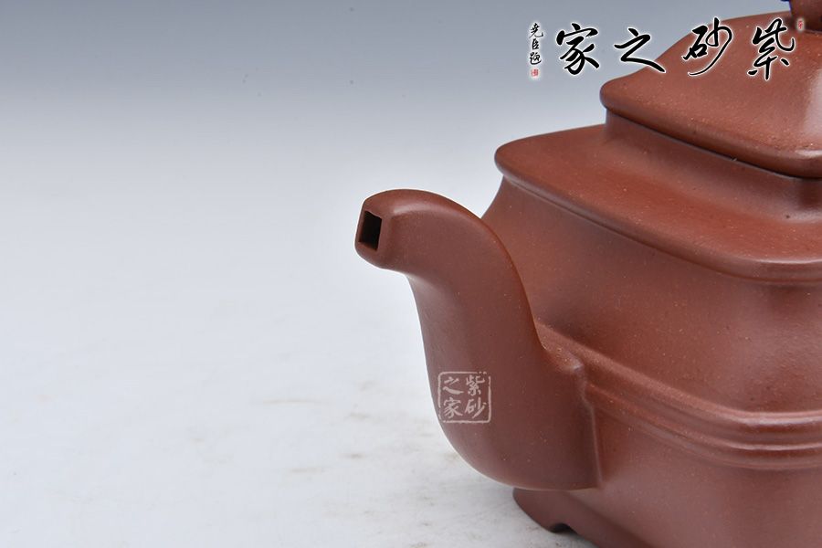 此《祥瑞四方》壺,原礦底槽清制作而成,容量460cc,古樸渾厚,線韻流暢,儒雅穩(wěn)重,于端莊中見氣韻、樸雅中顯精神,為品茗、收藏之精品。