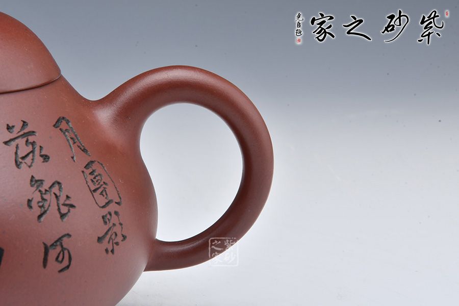 此梨形壺采用百目底槽清制成,泥色古樸而溫潤(rùn),易泡養(yǎng),360CC的容量,更宜泡飲功夫茶。壺腹部圓鼓下垂,形似鴨梨,壺蓋拱起與壺身相契合,球形鈕,彎流上揚(yáng),壺把圓弧彎曲自然,線條流暢優(yōu)美。整壺造工一絲不茍,且內(nèi)外如一,整體比例協(xié)調(diào),造型端莊俊雅卻不失靈動(dòng),皆展現(xiàn)出作者的功力,是一把使用、把玩、欣賞皆宜的佳作。