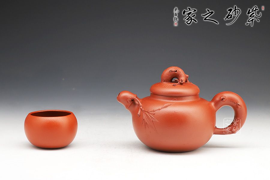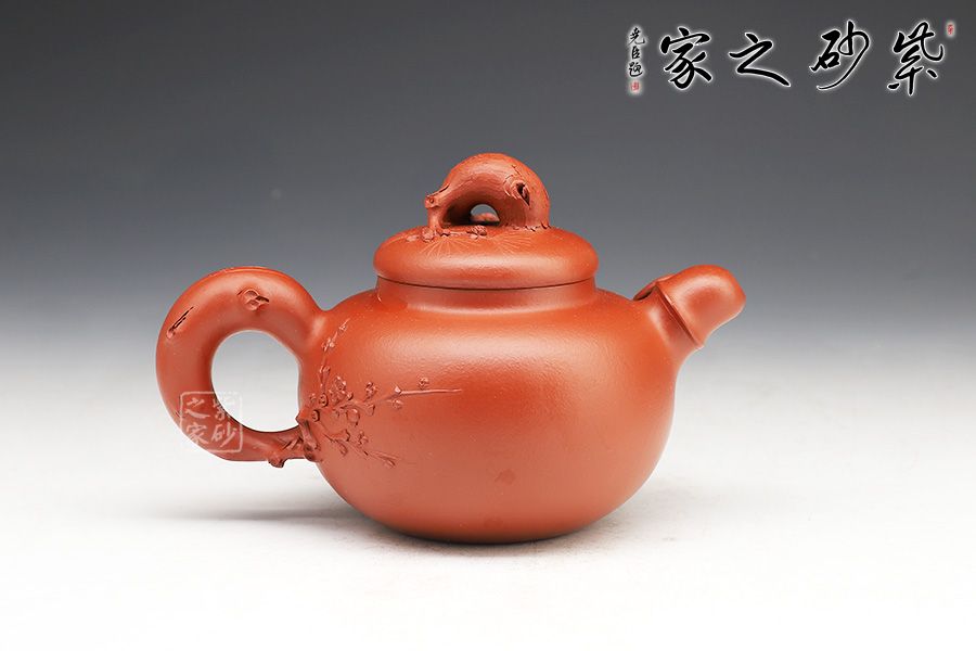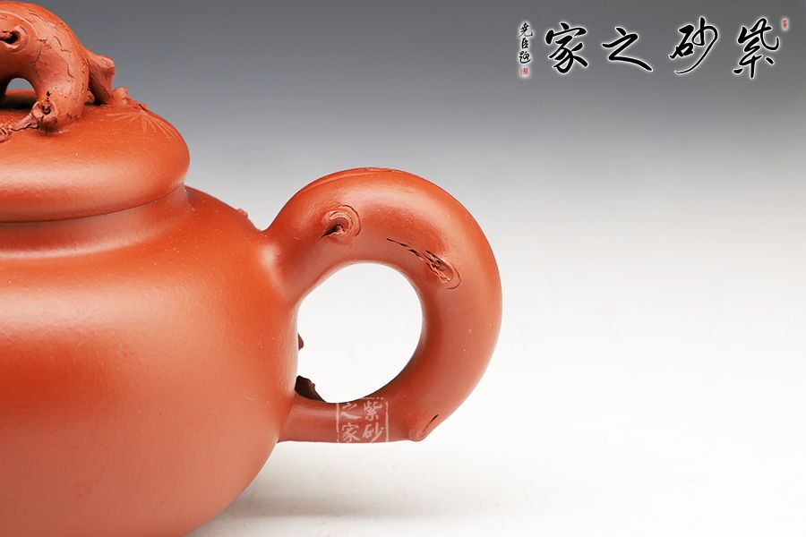 特點:質(zhì)感綿密、緊實細(xì)緻,持之扎實沉重、紅潤豔麗,泥中極品,無以倫比;泥胚含少許原礦顆粒,沖淋熱水后色變極大,呈紅中帶紫,養(yǎng)壺易現(xiàn)“包漿”之美。