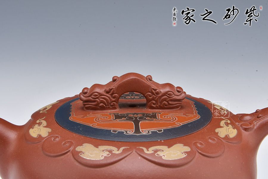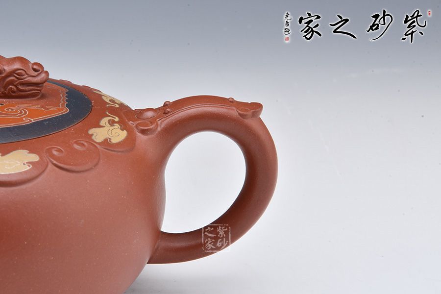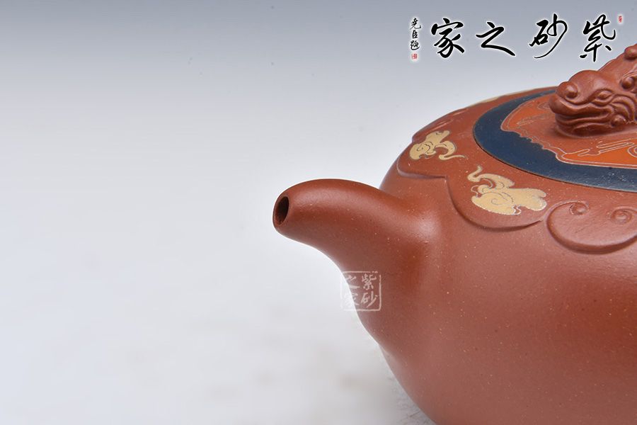 此壺壺身圓潤豐滿,從上至下收斂,如意紋裝飾肩線。一彎嘴出水爽利,耳形把粗出細(xì)收,上亦有如意紋飾,拿捏舒適。壺鈕最為別致,如意造型,雙龍交纏,形象逼真自如,呼應(yīng)壺名“雙龍如意”??捎?、可賞、可藏,喜歡的壺友不要錯過!