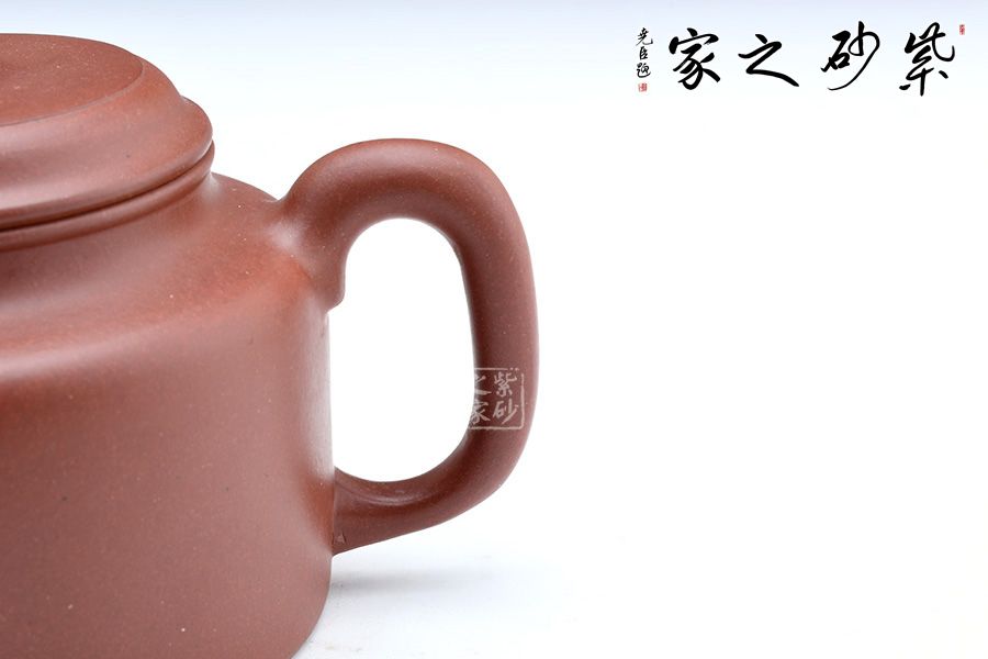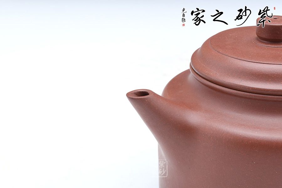 德鐘是紫砂光素器中的經(jīng)典器型之一,這款“德鐘”器形端莊穩(wěn)重,比例協(xié)調(diào),結(jié)構(gòu)嚴(yán)謹(jǐn),造型簡(jiǎn)潔質(zhì)樸。壺身挺括,壺蓋又比較高聳,更添了一番清瘦高古之美;明接直流嘴修長(zhǎng)昂揚(yáng),出水迅猛有力;端把方圓結(jié)合,端握起來(lái)舒適有力,傳統(tǒng)壓蓋嚴(yán)絲合縫,氣密性良好,扁柱鈕與壺身造型相稱。