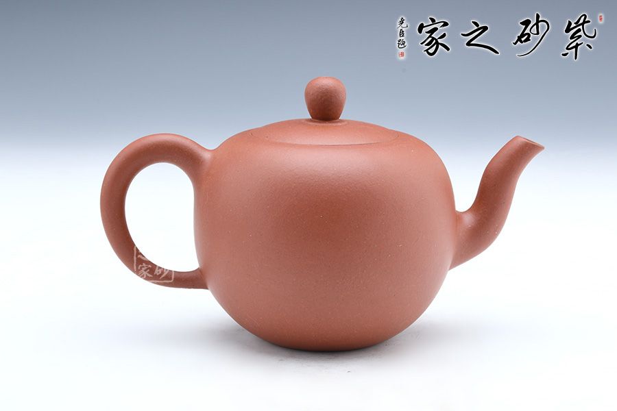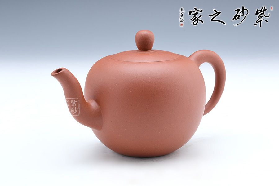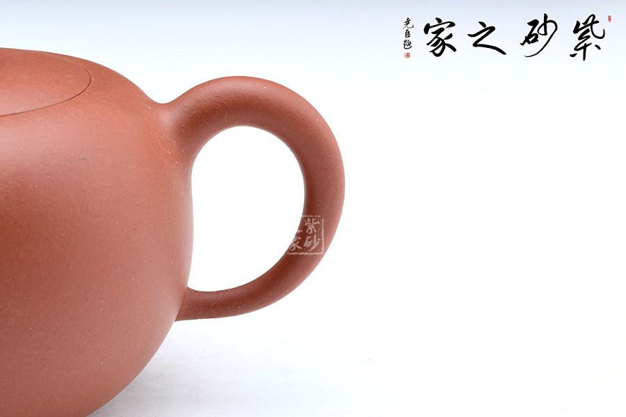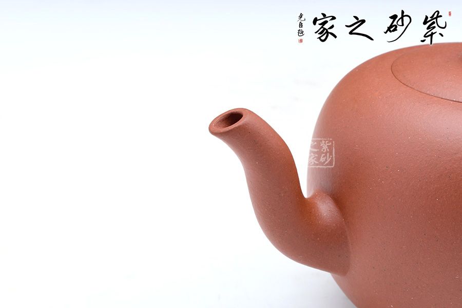一粒珠,壺鈕與壺身均為圓潤飽滿的球形,晶潤溫婉;截蓋設(shè)計,壺蓋與壺身融為一體,更顯示出壺身的圓潤,一粒碩大的壺鈕與壺身相映成趣;三彎流婉轉(zhuǎn)胥出,渾厚飽滿,嘴頭明顯收縮,形成嬌憨可愛的氣韻;壺把與壺嘴相對應(yīng),把體憨厚瑩潤,中間渾圓粗壯,不僅比例均衡,而且拿捏有力;整個壺身圓潤至極,一捺底穩(wěn)穩(wěn)挺立,平添幾分穩(wěn)重端莊的氣質(zhì),觀之可親。