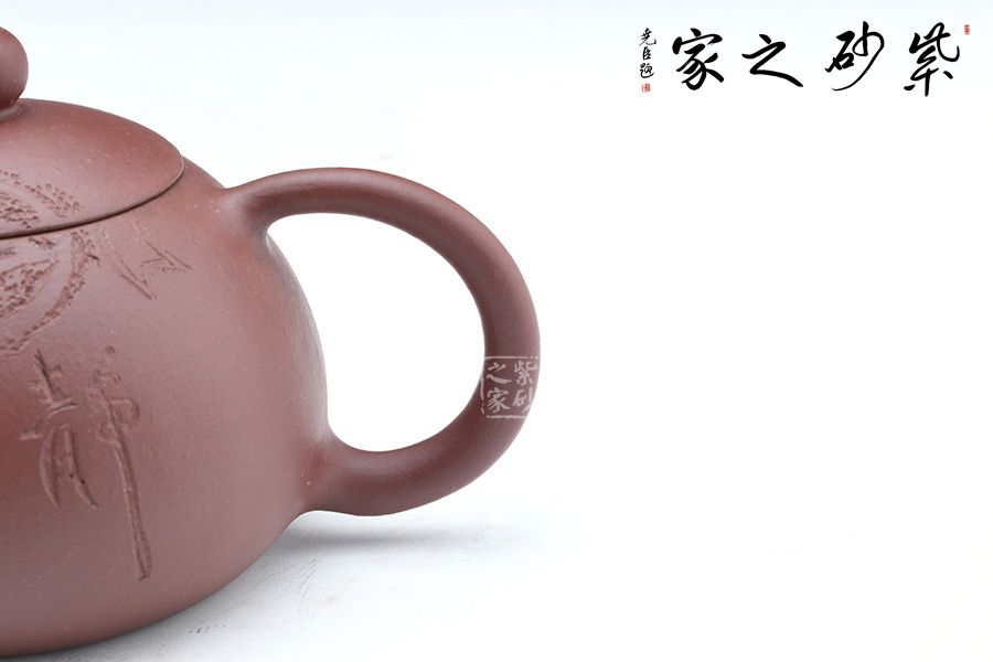 壺體線條舒緩柔美,簡(jiǎn)練俊美,此壺通身豐潤(rùn)飽滿,有如雍容華貴之意,直流型壺嘴更顯得嬌小可愛,為此壺增添了幾份韻味,倒耳型壺把的設(shè)計(jì)亦是此壺的特點(diǎn)之一,似有與壺嘴遙遙相望之意,而截蓋的設(shè)計(jì)使得整個(gè)壺從遠(yuǎn)處看如同一完美整體。
