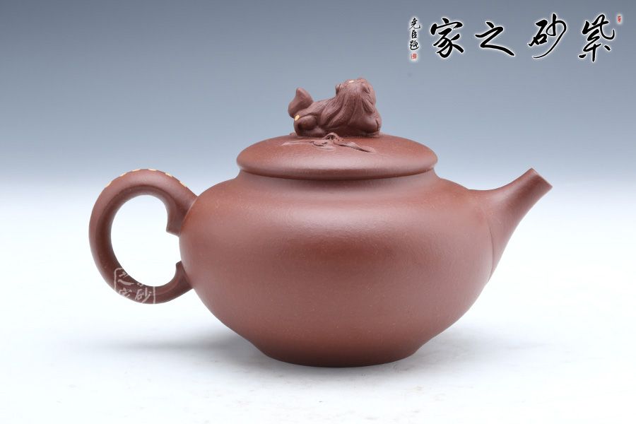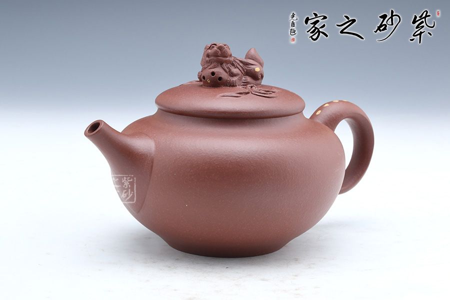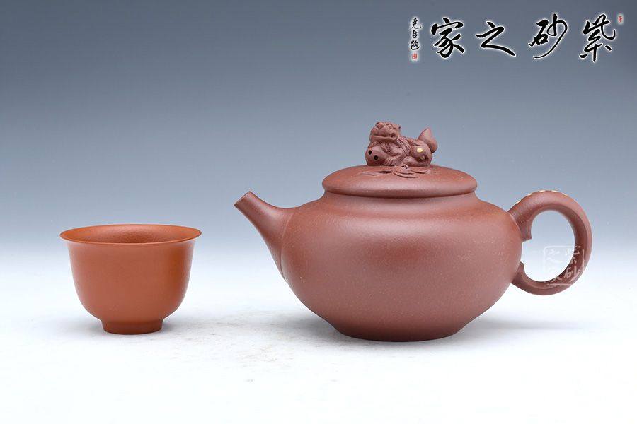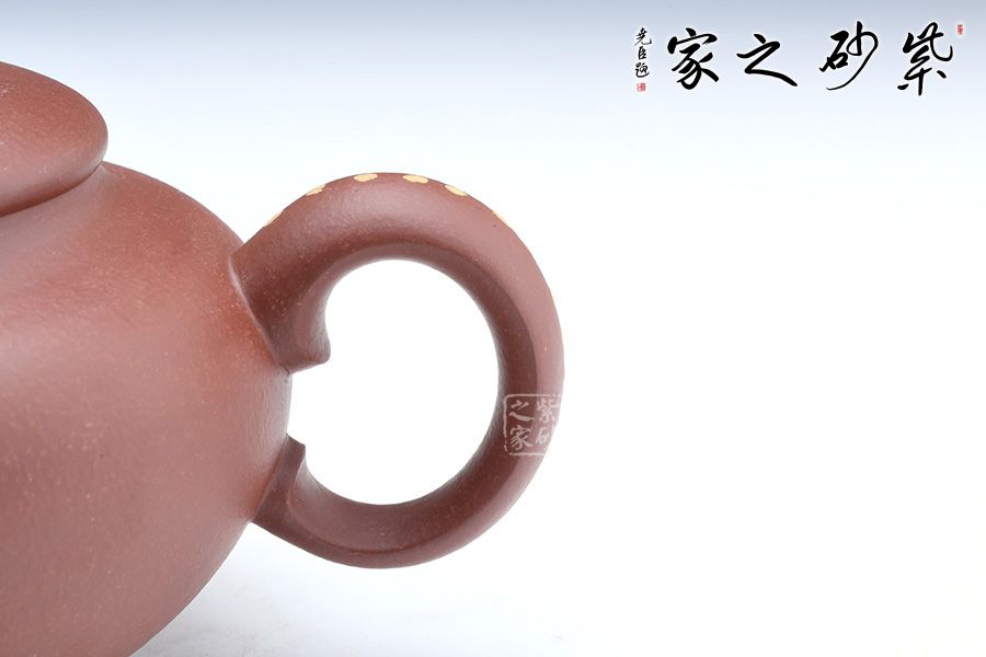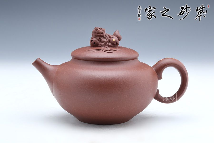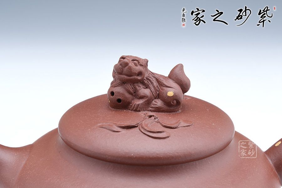 此壺端莊大氣,飽滿大度的壺體,給人以有容乃大的大家風范和氣度。一彎流胥出流暢,張力大,挺翹有力,耳把與之呼應,以醒獅為鈕,懷抱福氣,守住福氣,寓意如意吉祥。