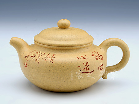永明的壺,在精工之中,越看越耐看,越看越有味,這“味”就是神韻。他的作品與眾不同之處,不單純是造型的區(qū)別,在造型之外更深層的是他對藝術(shù)的悟性而引發(fā)出的作品的韻味。在我眼中,中心于對紫砂藝術(shù)的研究,從材質(zhì)至造型,從使用功能到藝術(shù)欣賞,都在默默地用心思考與實踐。