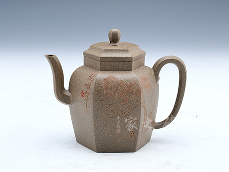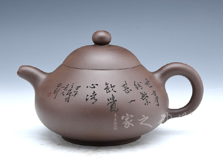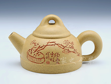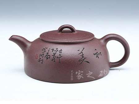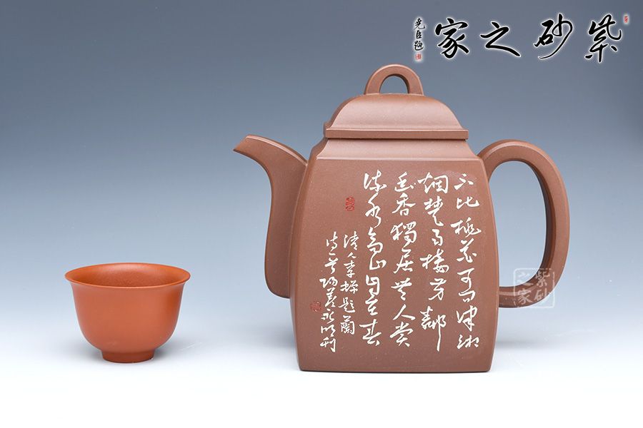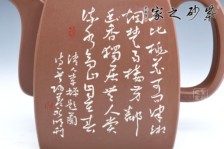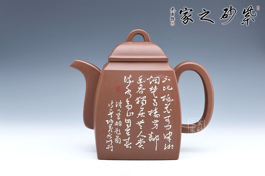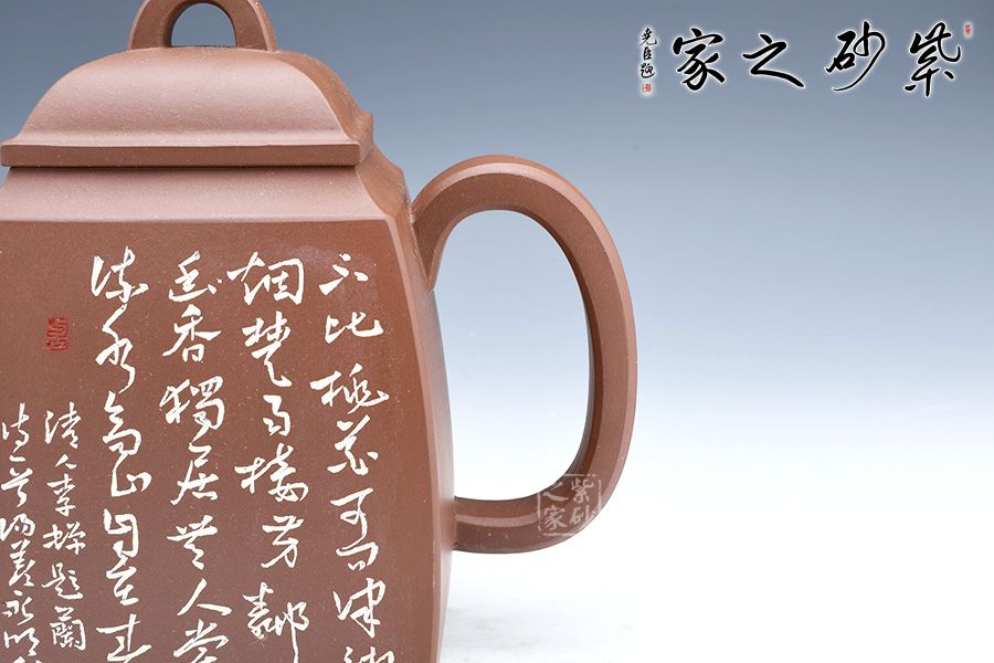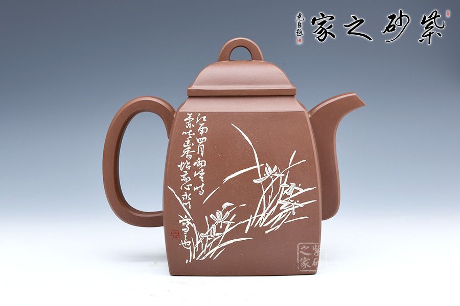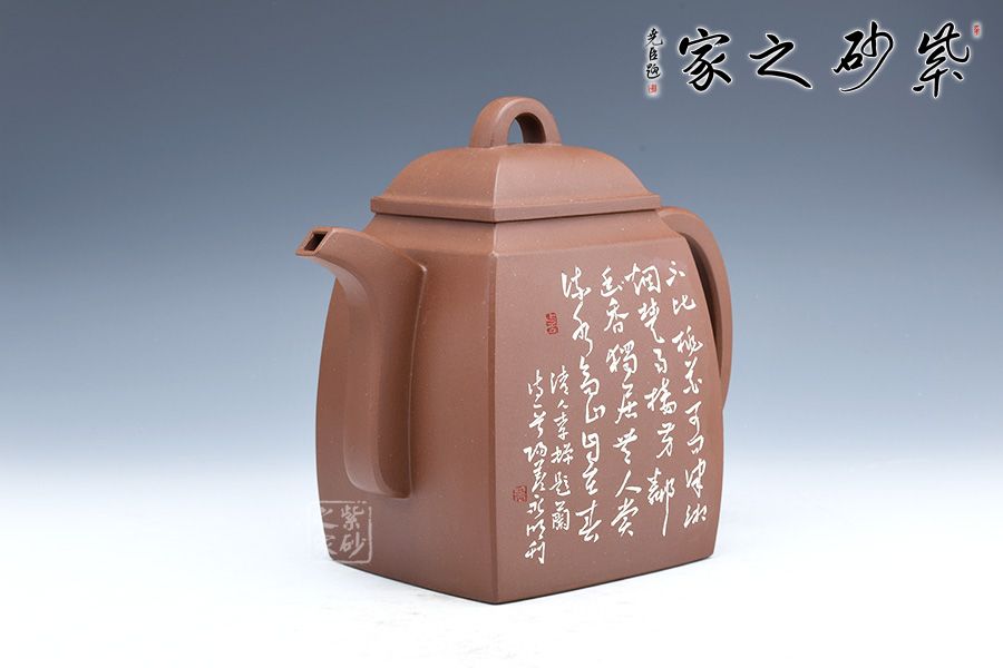 漢方壺是方器中經(jīng)典器型之一,穩(wěn)重大方而不失雅致是對漢方的描述,這款純手工制作的漢方棱角分明,非常惹眼,器型大氣飽滿,線條流暢豐美,氣勢非凡, 令人賞心悅目,加之曲線與直線的完美結(jié)合,作品方中見圓,圓中有方。該壺采用刻繪裝飾工藝,壺正面刻繪展現(xiàn)了文人風(fēng)骨,具有一種陽剛之美,值得品賞。