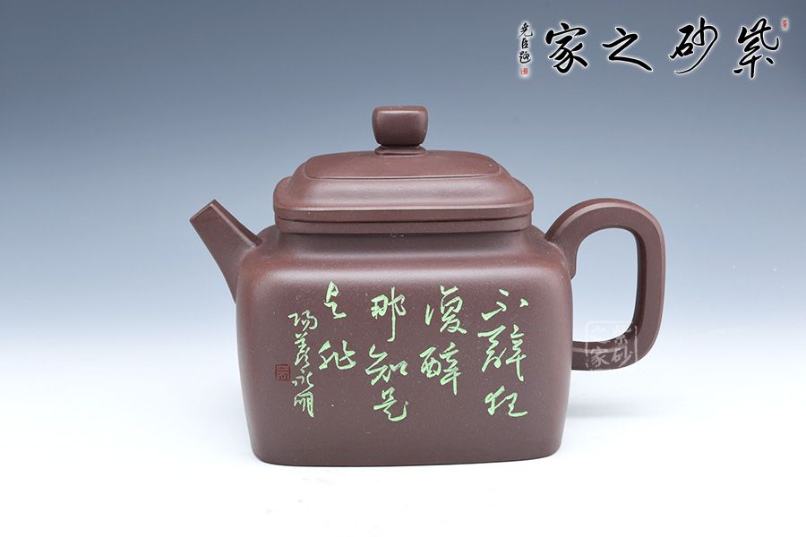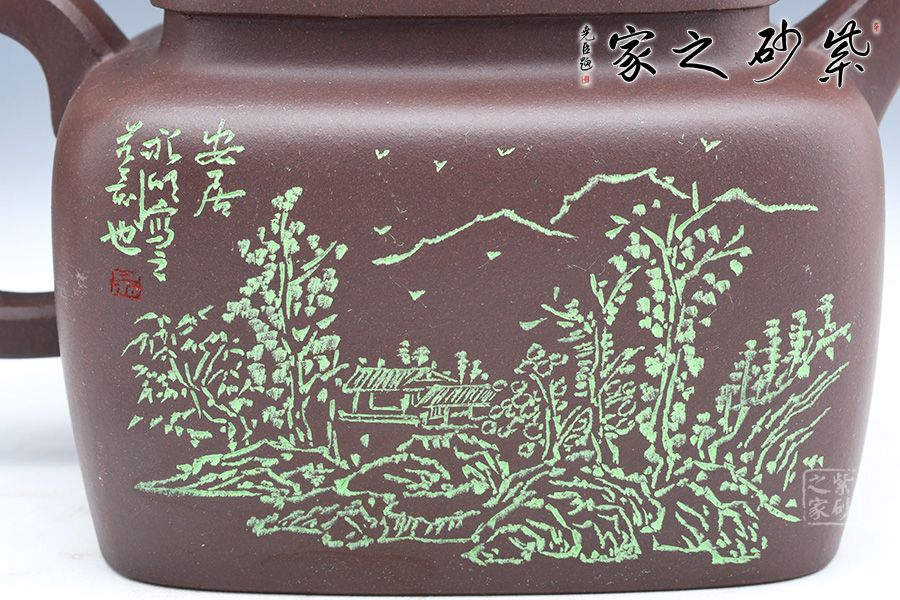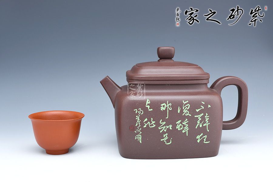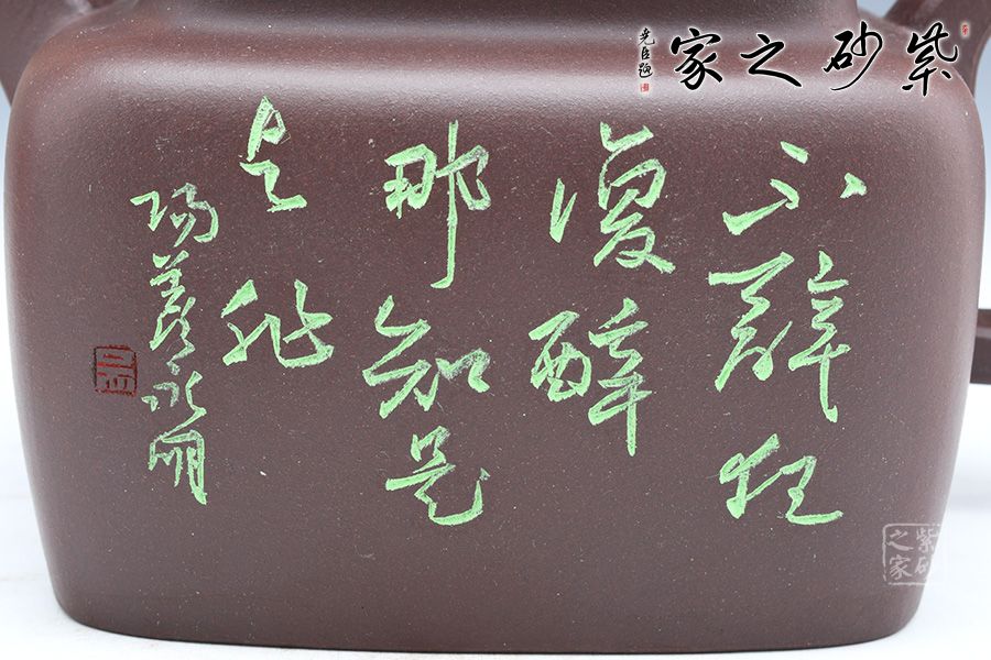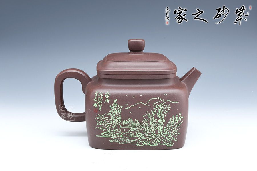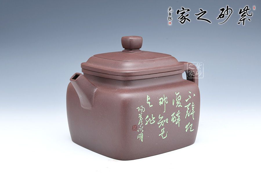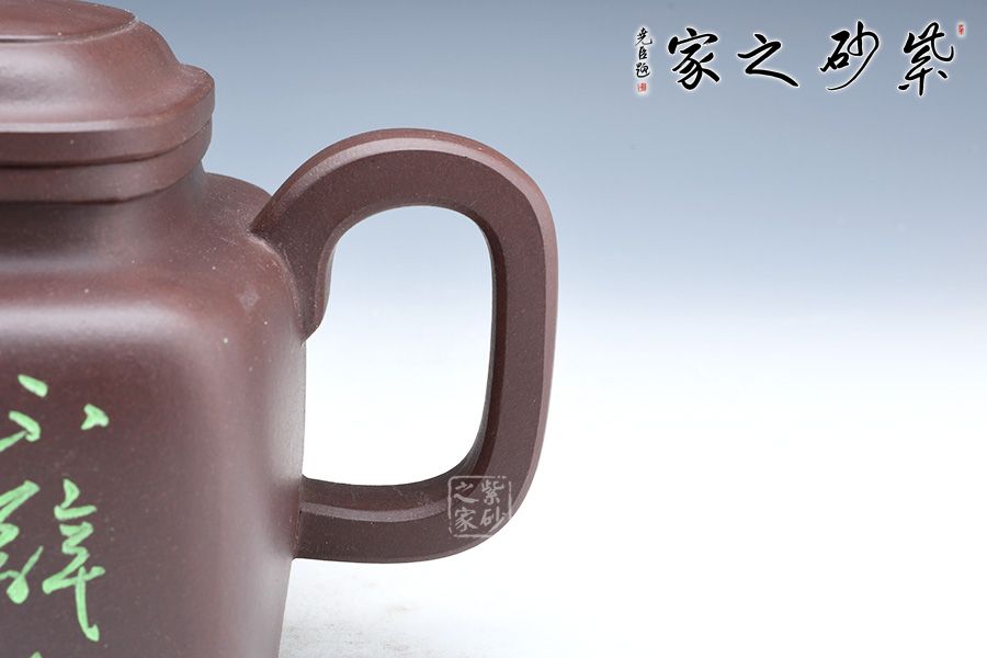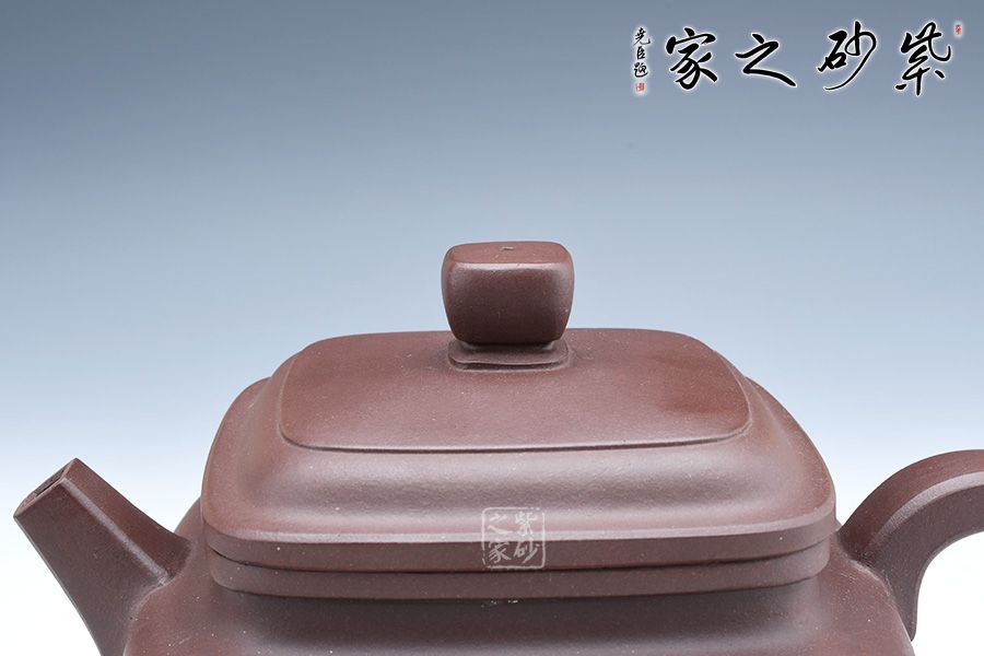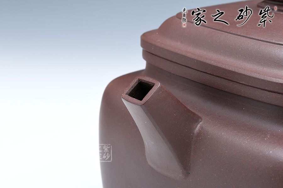 此壺端莊穩(wěn)重、比例協(xié)調(diào)、結(jié)構(gòu)嚴(yán)謹(jǐn)。不用以往的四方造型,莊重儒雅,質(zhì)樸大度,沉穩(wěn)周正,圓潤涵光。雖為四方,但折角皆極為圓潤,不突兀。壺口上下起圓線,口蓋直而且緊,無落帽之憂,壺鈕、壺蓋皆與壺身呼應(yīng),呈四方。耳把根部與肩線自然結(jié)合,各自延伸化轉(zhuǎn),呈疏朗大氣之韻。直流四方,有清正直諫君子之風(fēng)度。