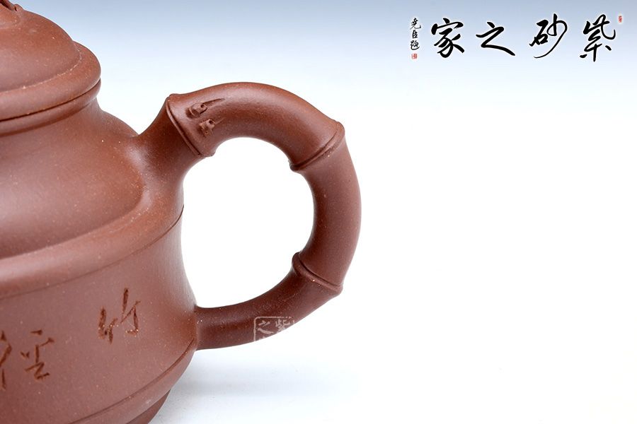 此壺為傳統(tǒng)壺型,傳承經(jīng)典,端莊雅致,不失渾厚樸實(shí),質(zhì)拙中顯高意,值得擁有。 以竹為主題,以竹節(jié)構(gòu)筑壺之流、把、鈕,壺蓋穹起,子母線(xiàn)吻合緊密,壺腹以雙線(xiàn)修飾,整款壺竹韻清疏,蓋上堆塑竹枝為橋鈕,嫩枝抽出,生動(dòng)有力,表達(dá)出秀逸、剛?cè)嵯酀?jì)、豐滿(mǎn)厚實(shí)的氣韻。