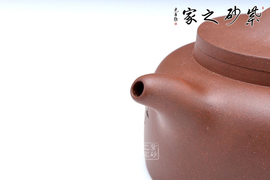 井欄壺是一款傳統(tǒng)的經(jīng)典器型,吳永明老師制作這款井欄壺氣韻沉郁深邃,透露出一股穿越而來的古樸味道。彎流自壺肩處胥出,細致柔美,環(huán)形壺把下端稍細,但沒有明顯過渡,所以整體線條平樸,沒有過度變化。如此一把精致好壺可不管是自用還是饋贈皆適宜。