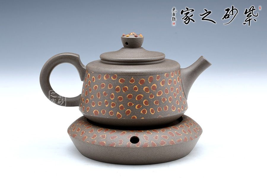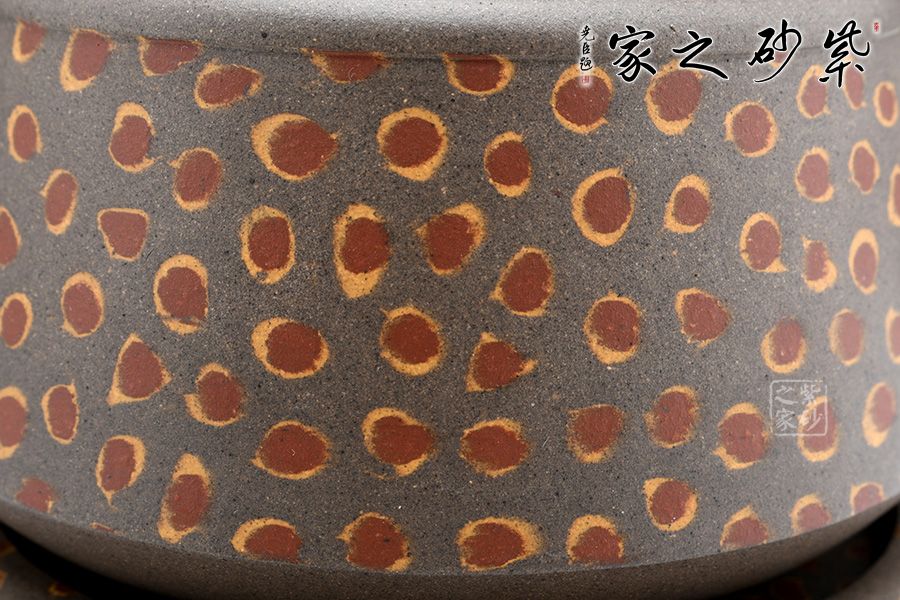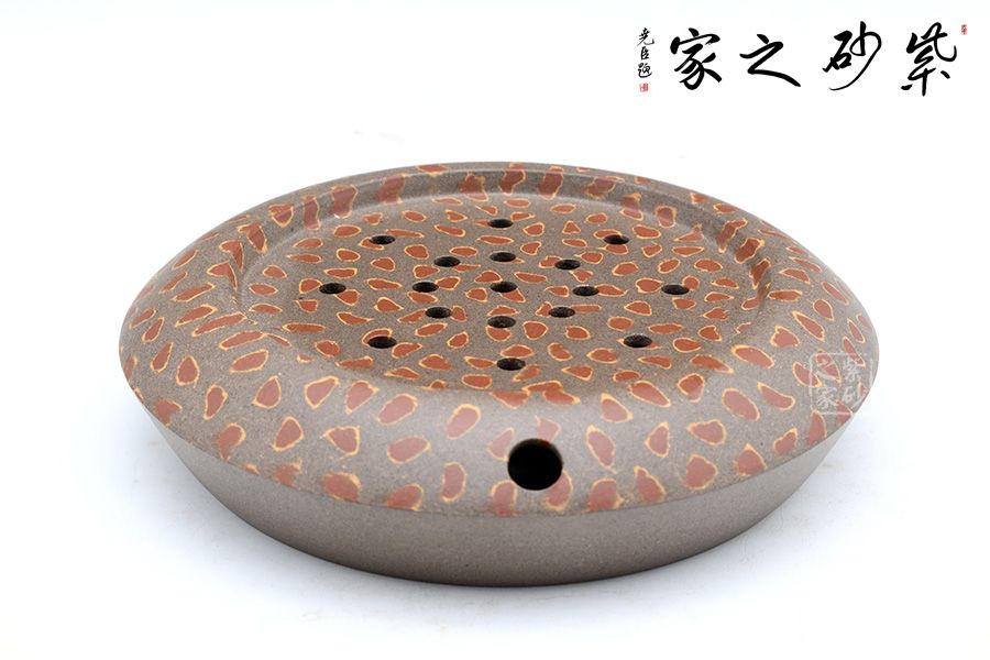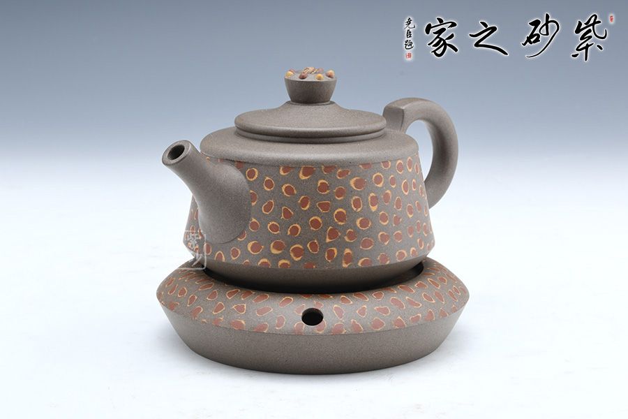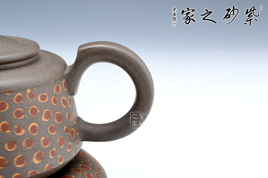 此套壺別致新穎,整體主題呼應(yīng),壺蓋以斗笠為型,壺鈕嵌入絞泥,壺身單絞多色泥,清雅脫俗,直流出湯流暢,耳把拿捏順手,搭配壺托同工同料,一托多用,實用且別具藝術(shù)感,推薦收藏。