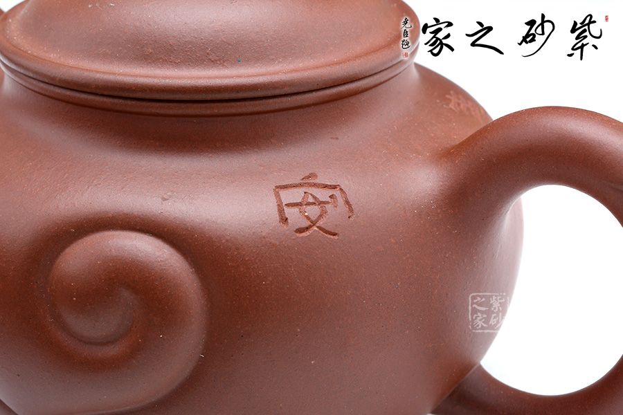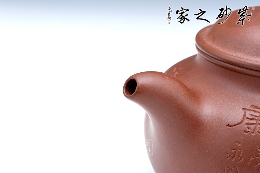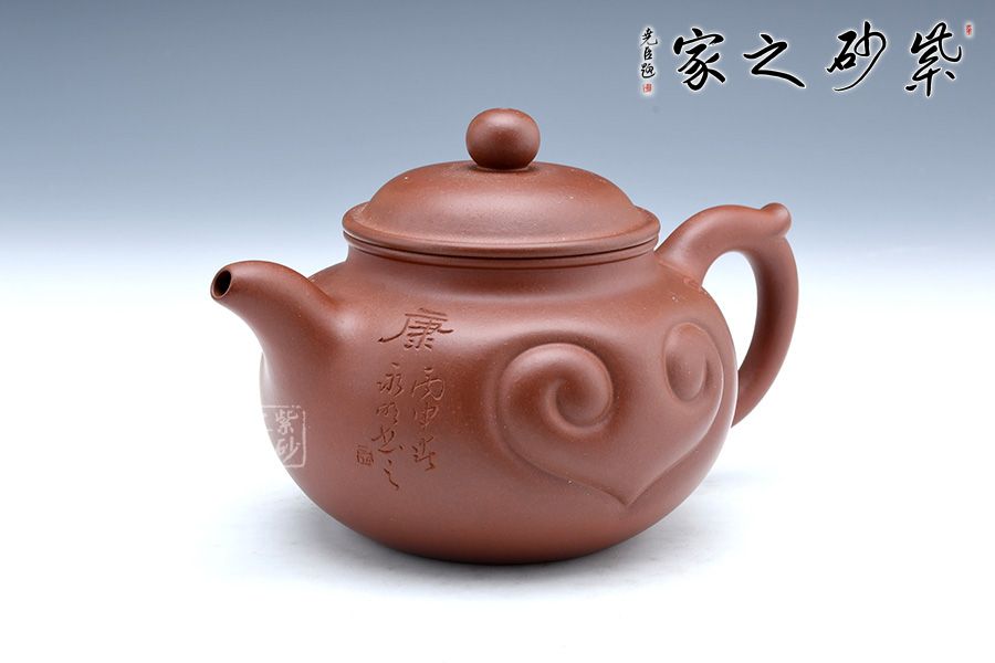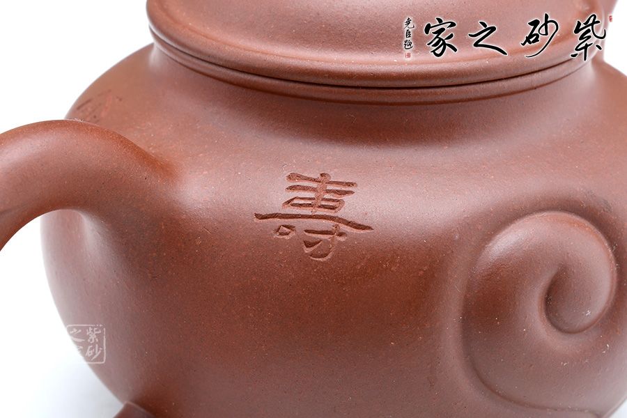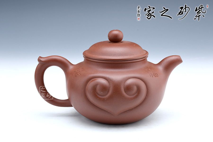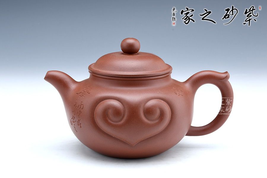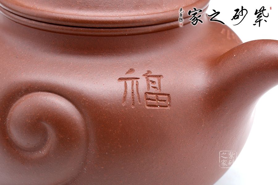 此壺直流飛把,如意器型大氣巧妙,圓潤(rùn)飽滿(mǎn)的壺身有著高雅脫俗的藝術(shù)魅力,壺身的如意紋飾刻精工細(xì)作,效果恰到好處,將老師滿(mǎn)滿(mǎn)的祝福融入到作品中,充分體現(xiàn)的作者的心靈相通,追求藝術(shù),追求工藝技法的精神。整把壺生動(dòng)活潑,造型一氣呵成,不管是泥料還是做工,都是作者用心而成的一件藝術(shù)珍品。