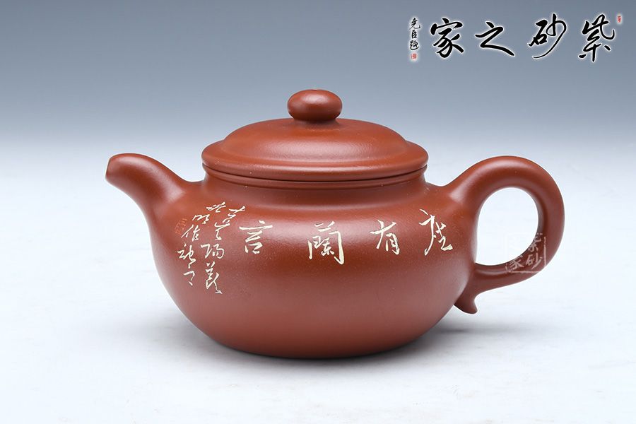 傳統(tǒng)器型,扁圓壺鈕、彎流、飛把,線條圓潤,但見柔美。