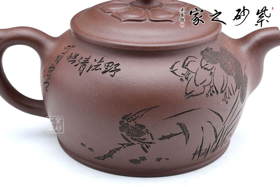 經(jīng)典圓器創(chuàng)新,摘鈕飾以盛開的蓮花,禪意十足,巧妙生動,壺型敦厚樸實,口大底穩(wěn),力度自然,人間之美物,造物亦是傳神,一把精氣神十足的作品,正是需要作者的傾力以赴,值得細(xì)細(xì)把玩!