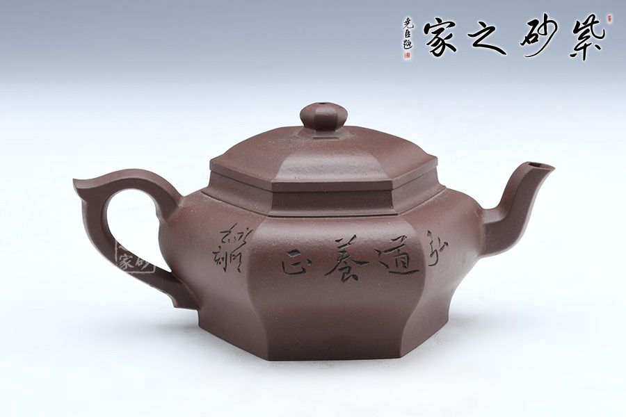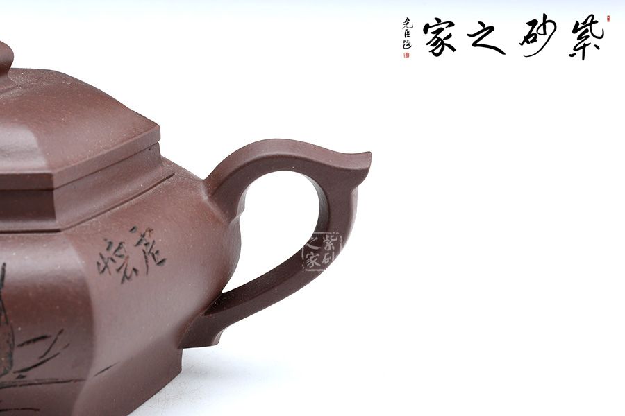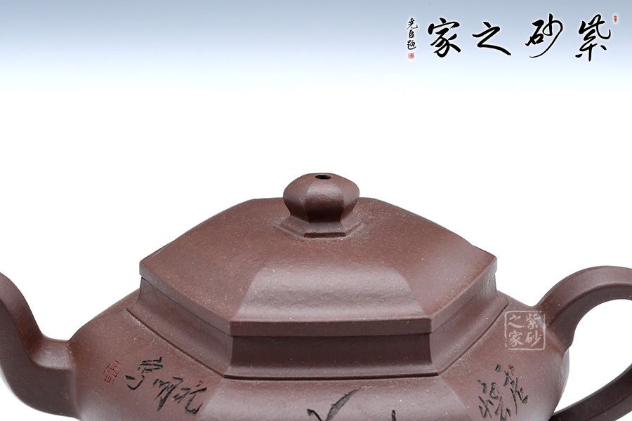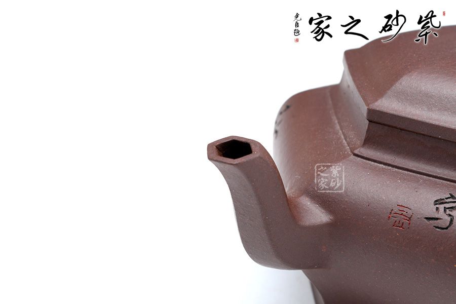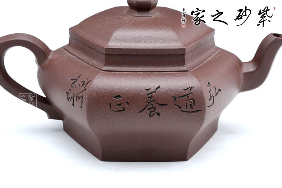 此壺線面挺括平整,線條過渡自然爽凈,有棱有角,力度透徹,風姿俊俏,干凈利落的陽剛之美,做到“方中寓圓,方中求變,口蓋劃一,剛柔相稱 ”,智欲其圓,行欲其方,方非一式,圓無一相,大開大合,骨力沉穩(wěn)的表達方圓。四面通轉無礙,且面面俱到,蘊含無限禪意。