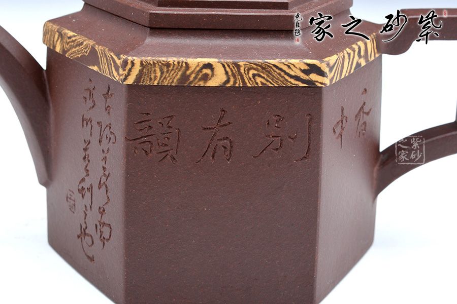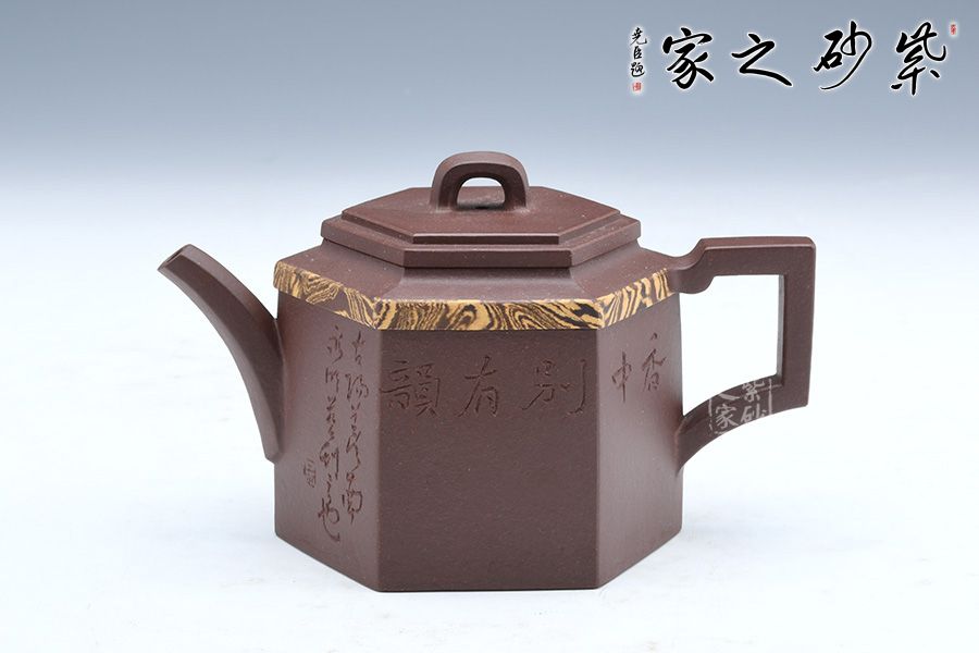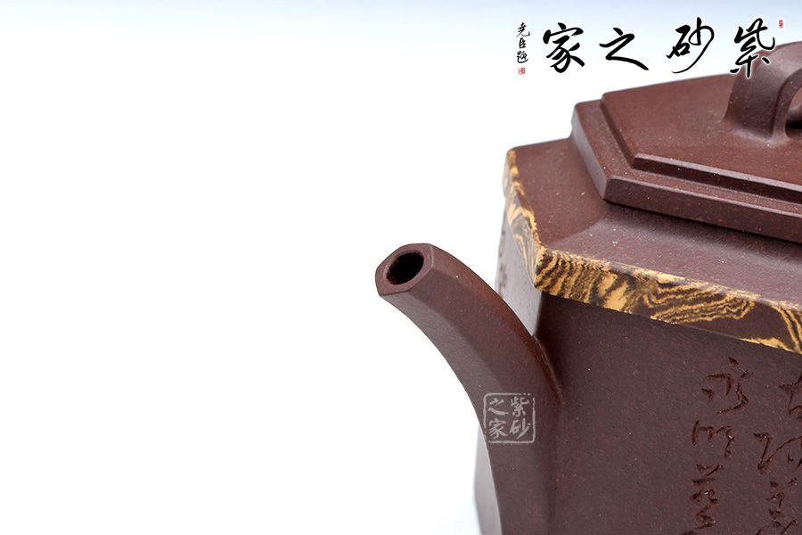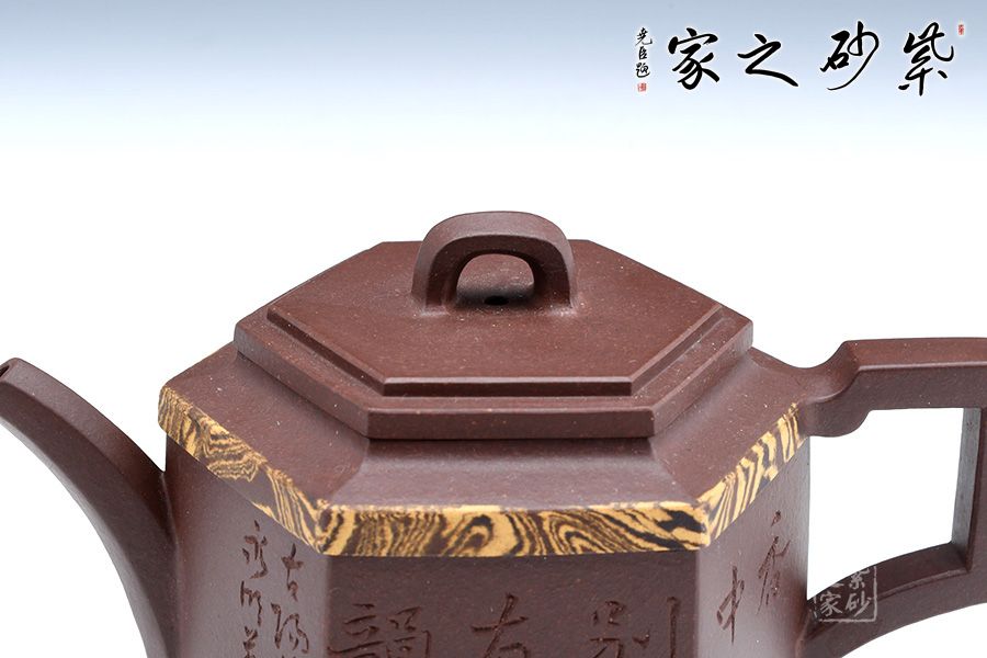 此壺線面挺括平整,線條過渡自然爽凈,有棱有角,力度透徹,風(fēng)姿俊俏,干凈利落的陽剛之美,做到“方中寓圓,方中求變,口蓋劃一,剛?cè)嵯喾Q ”,‘智欲其圓,行欲其方,方非一式,圓無一相’,大開大合,骨力沉穩(wěn)的表達(dá)方圓。四面通轉(zhuǎn)無礙,且面面俱到,蘊含無限禪意。