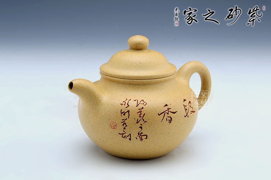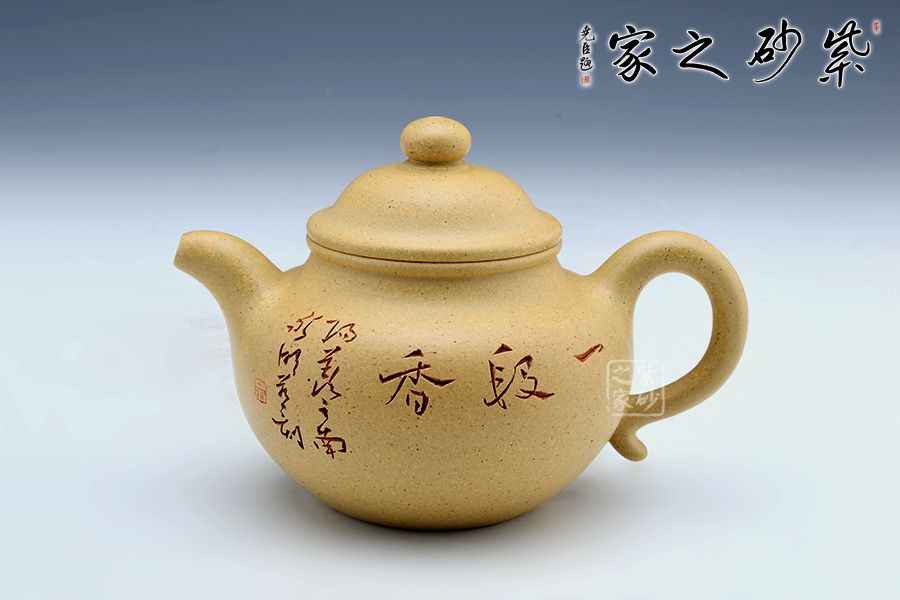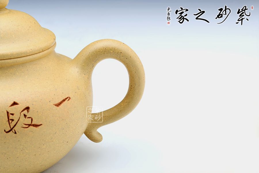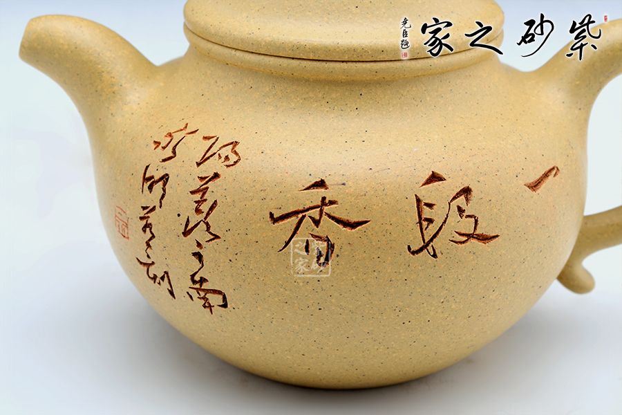 蓮子的家庭十分巨大,也是傳統(tǒng)器形,流傳這么多年了,古樸敦厚,其實(shí)器形比較下來,還是傳統(tǒng)的器形越看越有味道,非常耐看!我也是比較喜歡傳統(tǒng)的器形多點(diǎn);蓮子壺從最初的古樸敦厚到清秀俏麗的演變中,蓋子盈起,上加珠鈕,愈顯高聳。此壺線條圓潤有力,簡潔明快,也結(jié)合了蓮子壺從古至今的優(yōu)點(diǎn)所在,整個(gè)看起來便如同一顆圓滑的蓮子,甚是可愛。壺身刻繪“一段香”蒼勁有力,趣味十足。