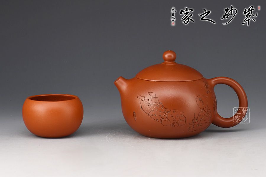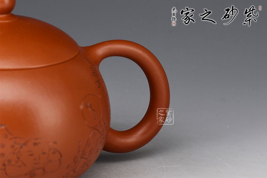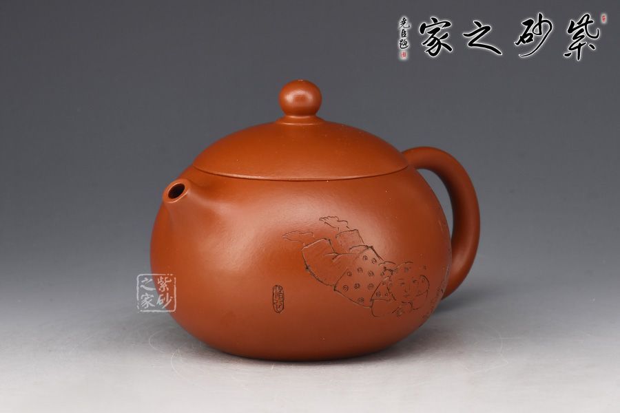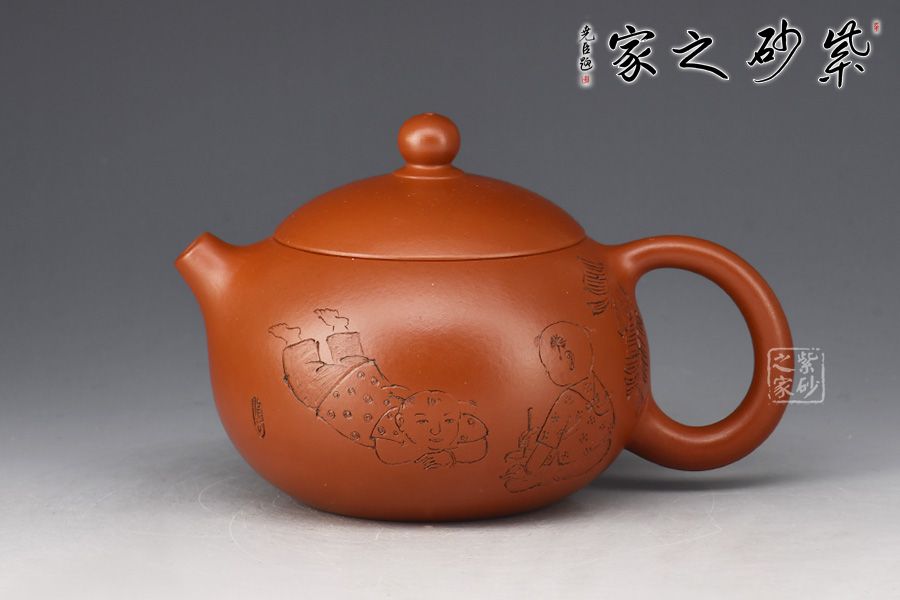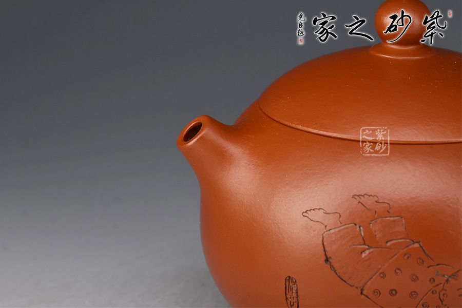 特點(diǎn):質(zhì)感綿密、緊實(shí)細(xì)緻,持之扎實(shí)沉重、紅潤(rùn)豔麗,泥中極品,無(wú)以倫比;泥胚含少許原礦顆粒,沖淋熱水后色變極大,呈紅中帶紫,養(yǎng)壺易現(xiàn)“包漿”之美。