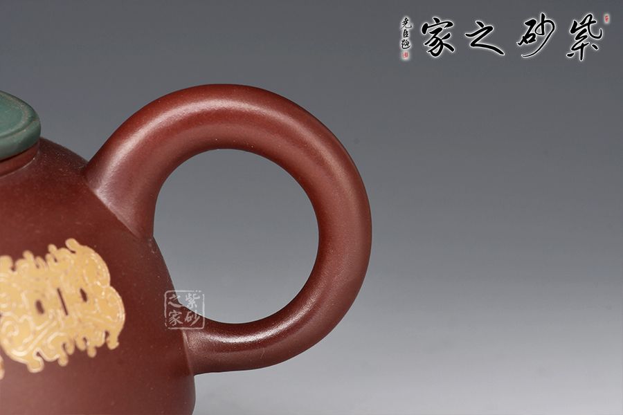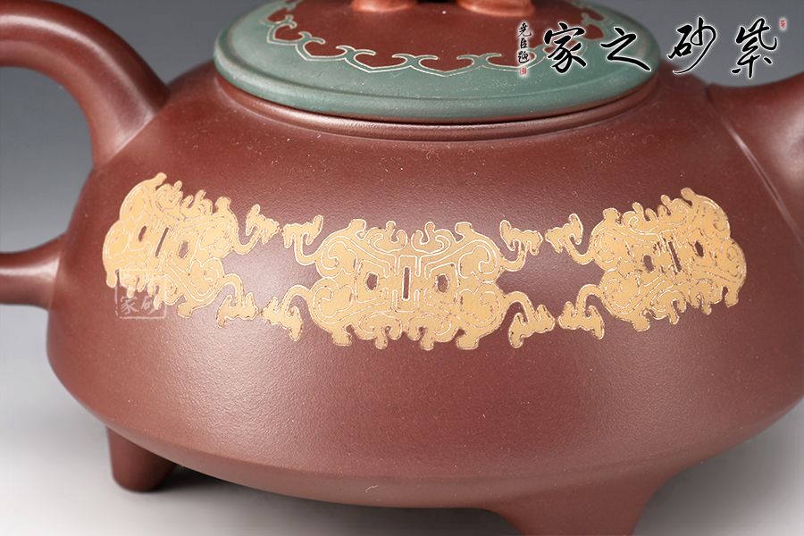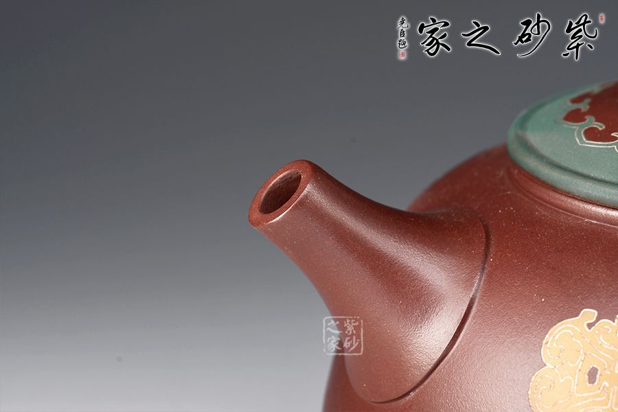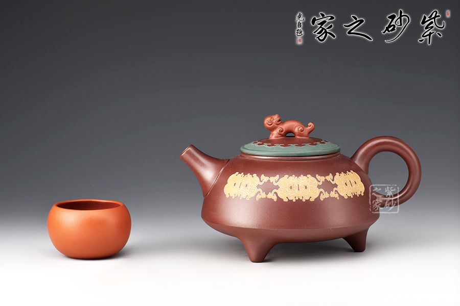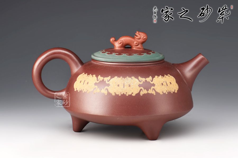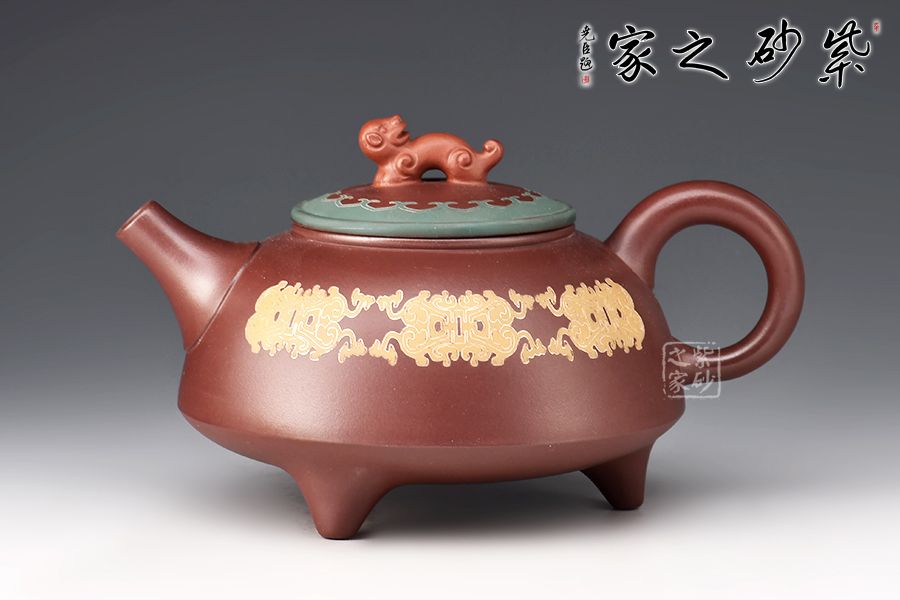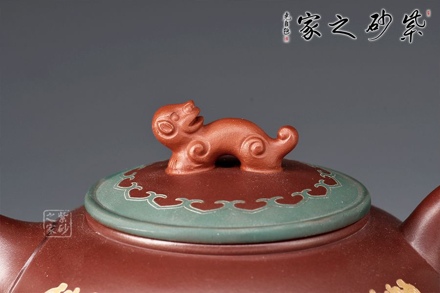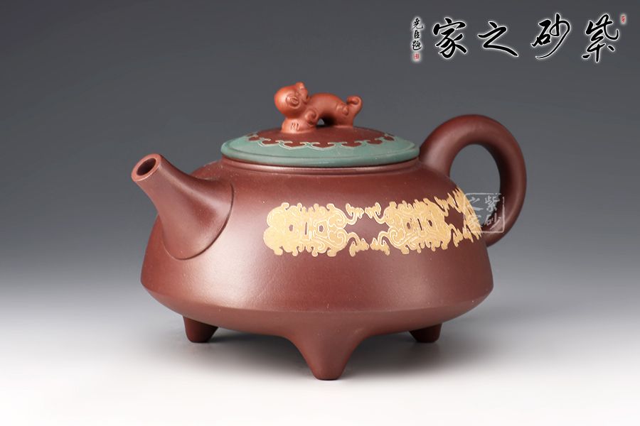 此款《祥瑞》原礦紫泥制成,泥色紅潤,養(yǎng)成效果極佳!此器造型簡潔,壺體半圓,底部三足,流把銜接流暢,圓蓋獅鈕,彰顯吉祥瑞意。壺腹琺瑯彩裝飾,富貴華麗,超高性價比,推薦收藏!