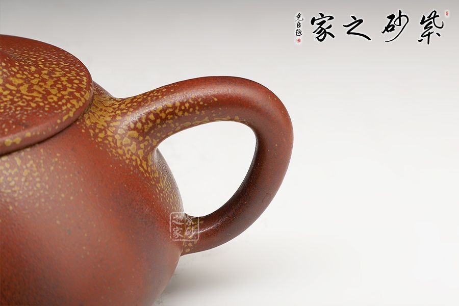 經(jīng)典器型,整個(gè)壺比例勻稱(chēng),精巧可愛(ài)。無(wú)論是橋鈕、壓蓋,還是直流、三角把,抑或是人字形壺身,布局精巧,恰到好處。