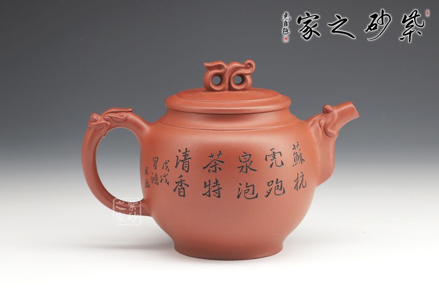 此壺精選原礦底槽青泥料,質(zhì)地特純,泥質(zhì)細(xì)膩、成色穩(wěn)重。壺身呈圓柱形,圓潤(rùn)飽滿,線條流暢,壺嘴壺把形似龍嘴,氣勢(shì)磅礴,嵌蓋設(shè)計(jì),壺鈕似神游的龍,形象生動(dòng),栩栩如生,整體大氣美觀,霸氣自然,沉穩(wěn)端重。