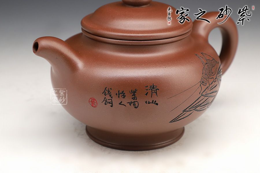 掇只壺是紫砂壺中一種常見的經(jīng)典壺型,此壺彎彎的壺把和彎曲的壺嘴相互協(xié)調(diào),壺身和壺蓋都為圓形設(shè)計,特別是壺蓋上的圓球與壺蓋壺身相互襯托,顯示出一種流暢美觀,深受壺友的喜愛。