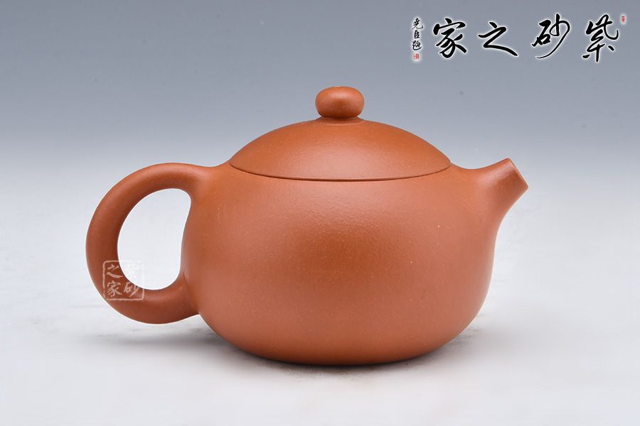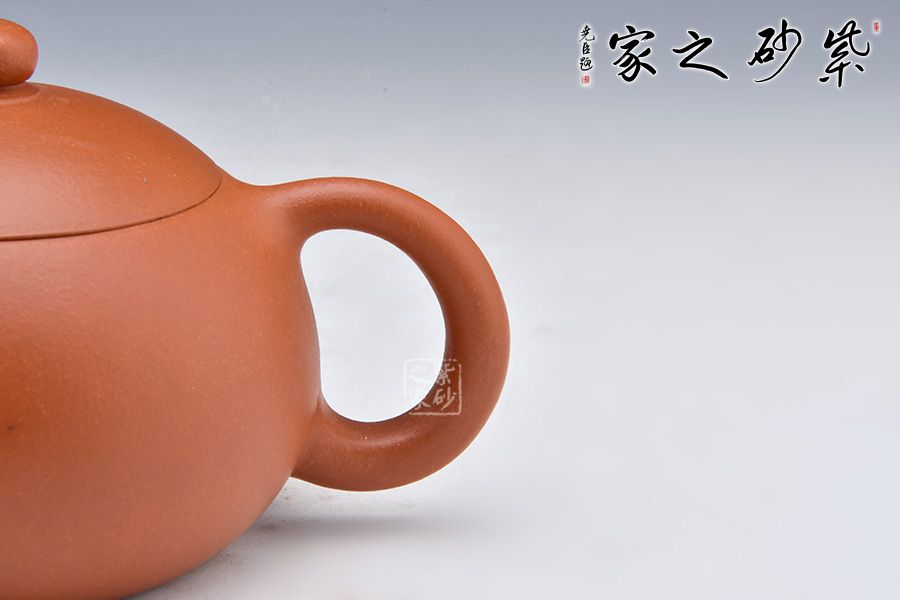 有人說(shuō)西施的一顰一笑皆風(fēng)情萬(wàn)種,因此紫砂界便有了“沉魚(yú)”的西施壺。壺嘴翹起若撅著的櫻桃小口,仿佛撒嬌的小姑娘;壺身飽滿(mǎn)圓潤(rùn),看起來(lái)像是輕泛紅暈的粉潤(rùn)臉頰;倒把上細(xì)下粗,則似身后那烏黑發(fā)亮的發(fā)髻。