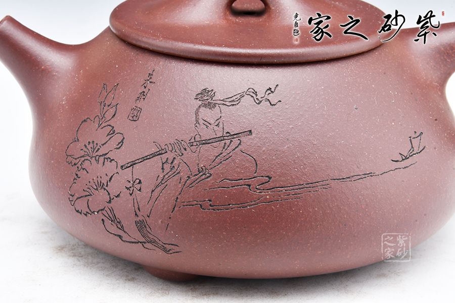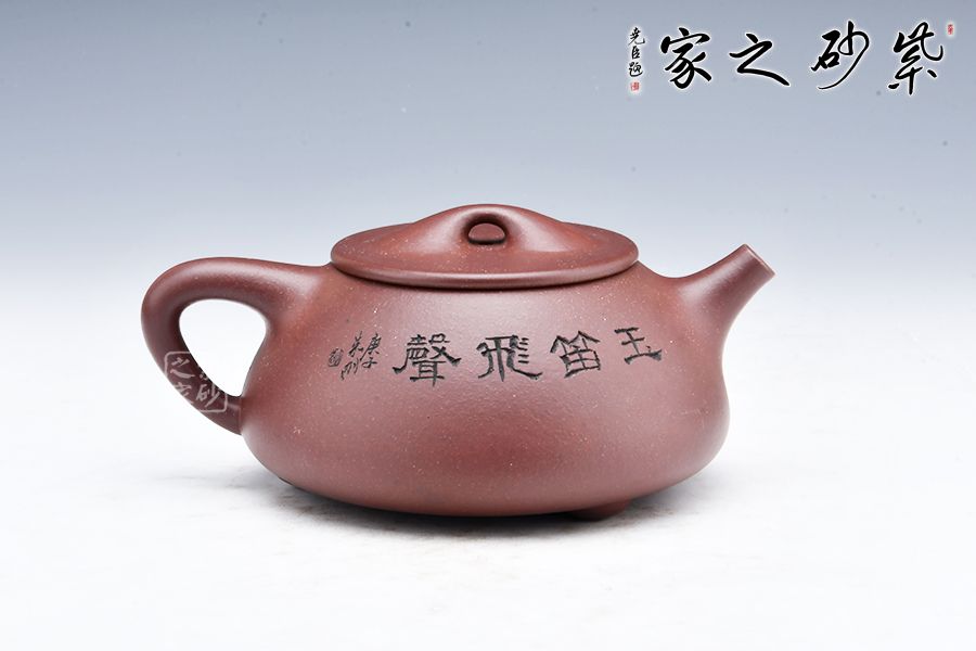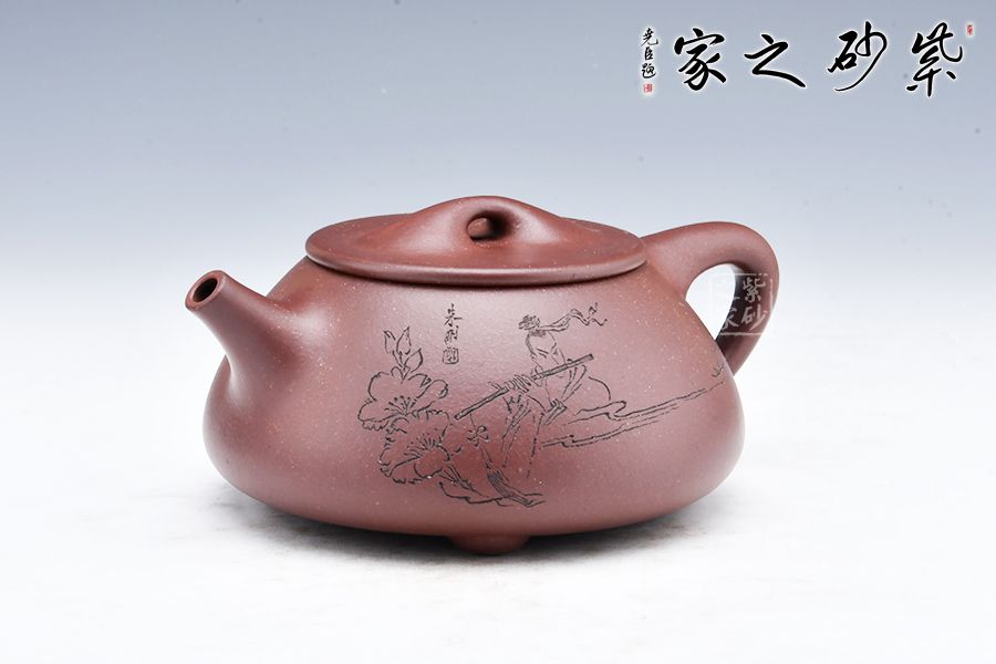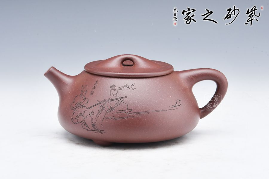 精選原礦底槽清泥料制成,質(zhì)感渾厚,色澤深邃。壺身刻繪玉笛飛聲圖,氣韻傳神,意境悠遠(yuǎn),值得品味。經(jīng)典石瓢,壺型永不過(guò)時(shí),傳世之作,幾何與幾何的拼接,立體有感,靜中有變。