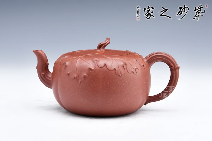 此“瓜趣”即南瓜壺,南瓜壺在紫砂器分類中被劃為像生器,它是藝者從大自然汲取靈感所創(chuàng)制的壺型,帶有一股來自鄉(xiāng)野的清新活潑氣息,經(jīng)藝人加工,又顯得玲瓏精巧,溫雅可愛。