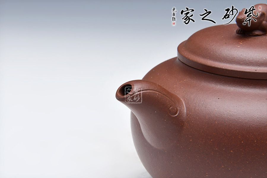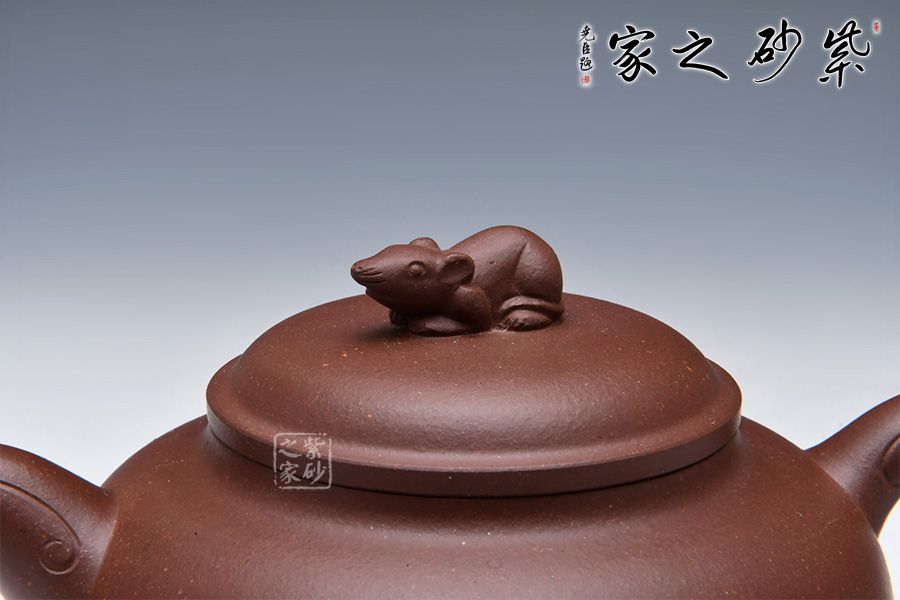 此壺名為“處處如意”,寓意吉祥如意。壺身飽滿圓潤(rùn),由中間向上下收斂,一彎流出水爽快,耳形把便于抓握。壺鈕是一只鼠來(lái)寶立于壺蓋,整器結(jié)構(gòu)緊致,簡(jiǎn)潔大方,加之鈕、流與把的如意紋,體現(xiàn)了老師滿滿的祝福,可謂一款佳作!