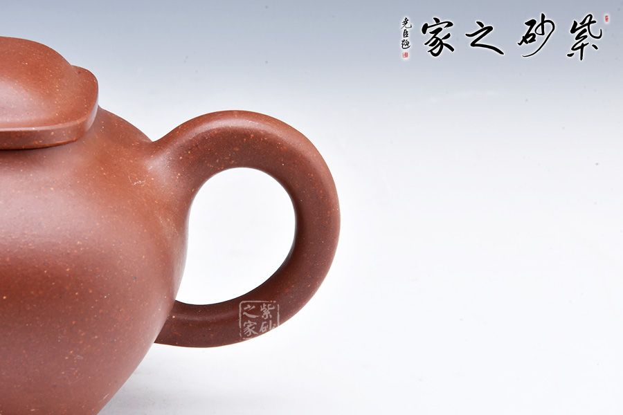此壺名為傳爐,泥質(zhì)細(xì)膩柔和,砂感隱現(xiàn),底蘊儒雅。壺身骨肉亭勻,上豐下斂,輪廓清晰,線條流暢并過渡自然。壺嘴呈三彎流狀蜿蜒上翹,優(yōu)雅自然,出水爽利。耳形壺把端莊自然,壺底處四個乳足高挺,襯托了壺的高俊挺拔之氣。靜觀此壺,仿若有裊裊青煙從優(yōu)雅端莊的壺中飄散開來,令人心曠神怡,好似進(jìn)入了另一個層次的人生境界中,耐人尋味。此壺,值得珍藏。