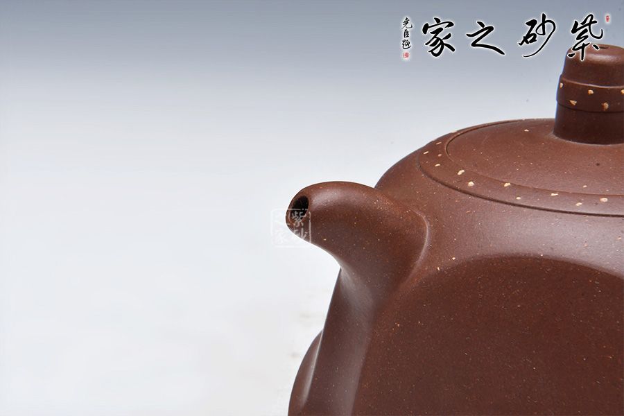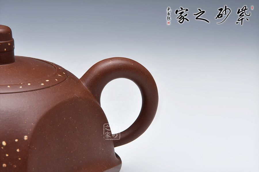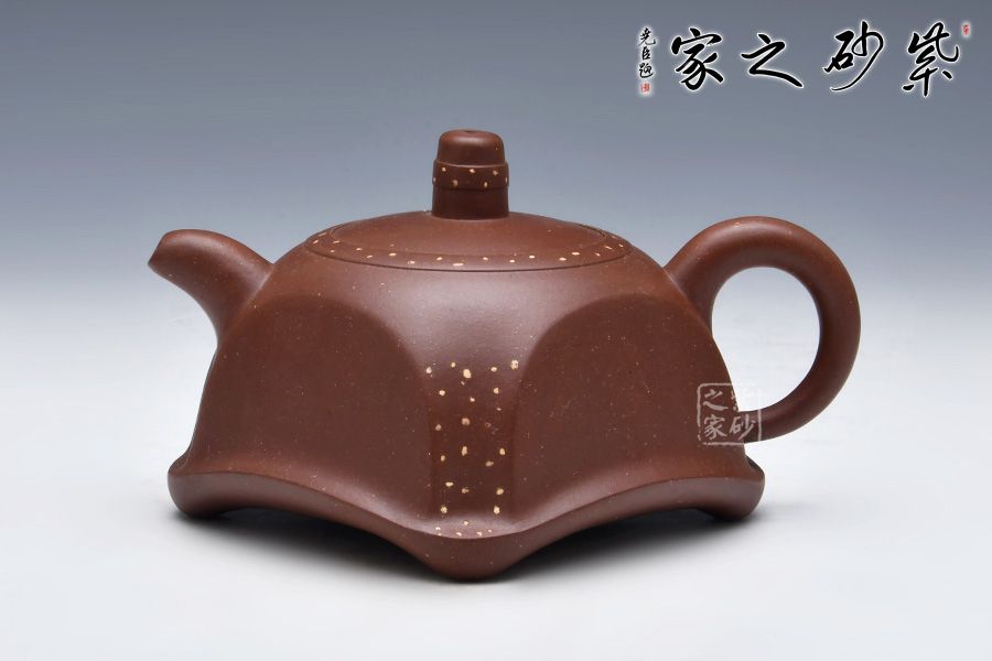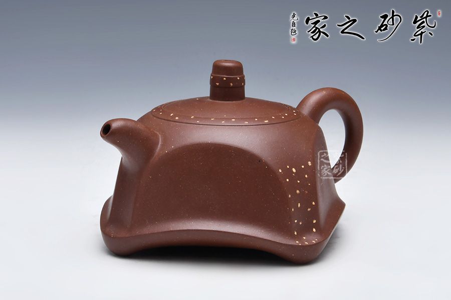 此款壺形模仿古代器物,漢代瓦當(dāng)式樣,但又不同于傳統(tǒng),造型獨特。壺身方中有圓,圓中有方,線條流暢,意境古補,彎嘴出水流暢。壺呈四面,如瓦當(dāng)圍四面,身筒渾然一體,底足流暢,嵌蓋工藝,柱形鈕,鋪砂工藝,畫龍點睛。 現(xiàn)代工藝融合漢瓦之藝術(shù),賦予了紫砂文化與歷史的厚重感,是不可多得的一件作品。