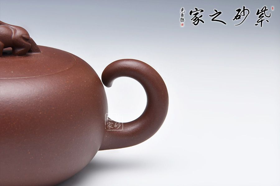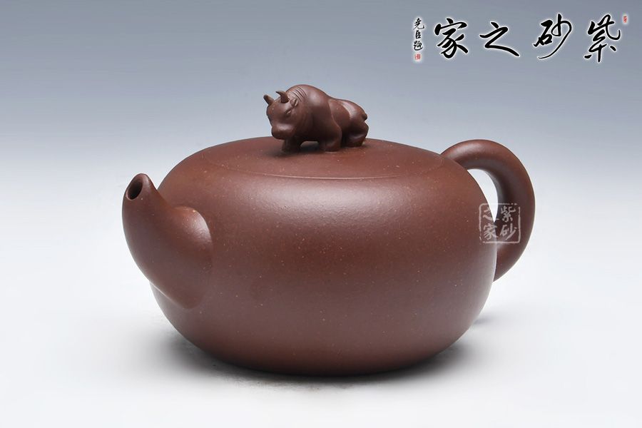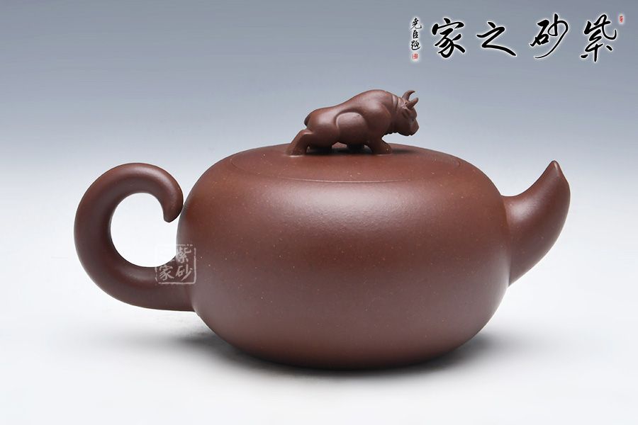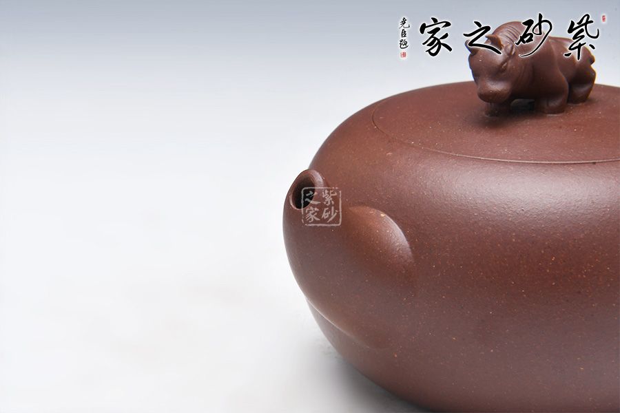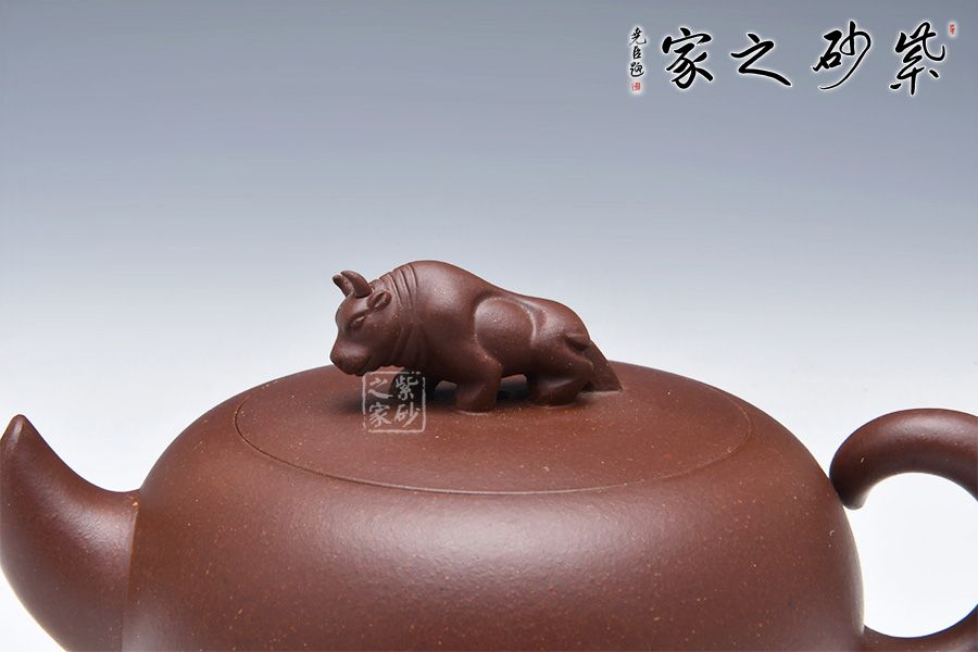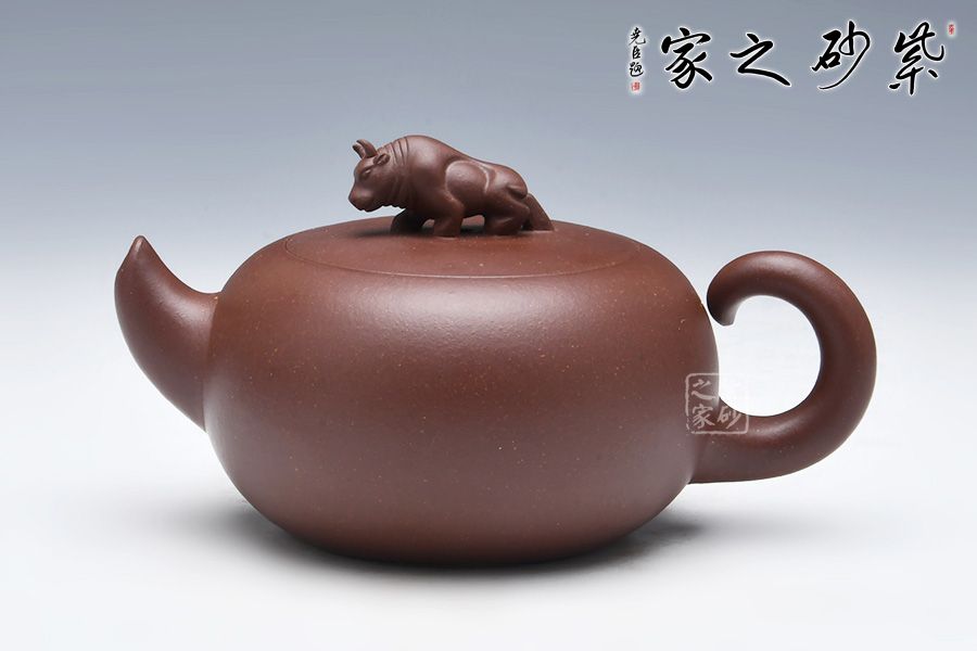 此牛氣沖天壺,以球體為壺身,以十二生肖之一牛為鈕。短流嘴自壺身倔強的翹起,與如牛尾卷起的壺把兩相呼應(yīng),此壺增添了很多趣味,整器有一種力壓之下勃勃的張力和爆發(fā)力,值得推薦!