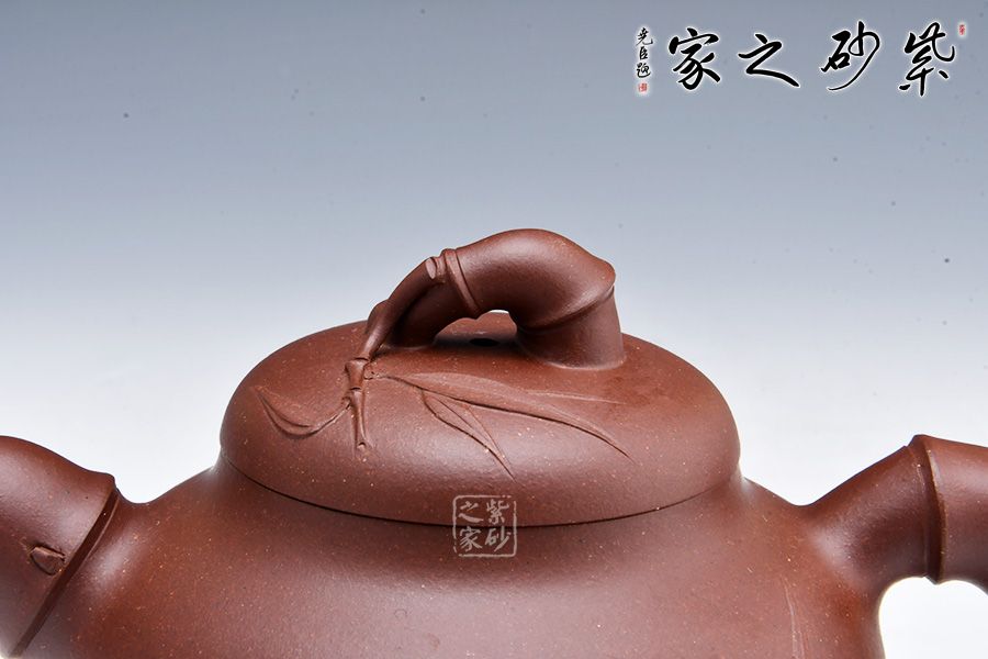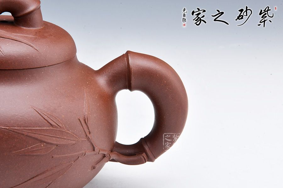 在中國文化中,竹寓意吉祥,竹有節(jié),即節(jié)節(jié)高升,又有竹報平安,竹又諧音“祝”,有美好祝福的習俗意蘊,在許多藝術創(chuàng)作中也會融入竹元素。此壺即是以竹為主題的紫砂作品,寄托了作者濃濃的祝福之意。