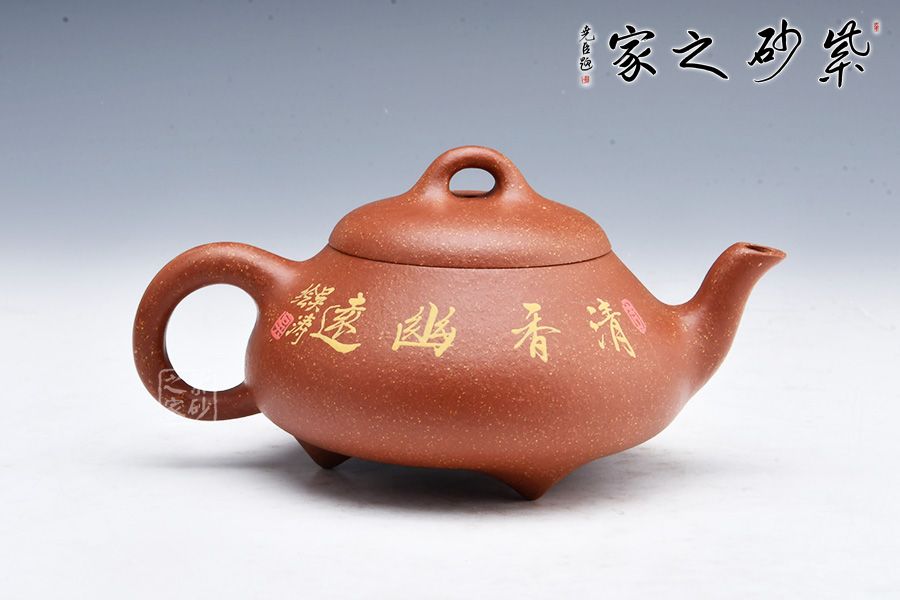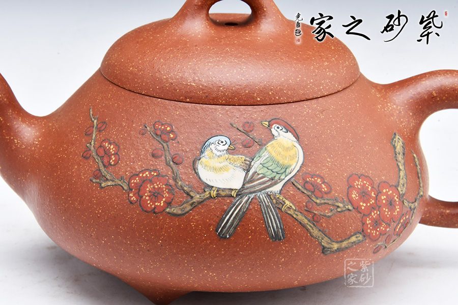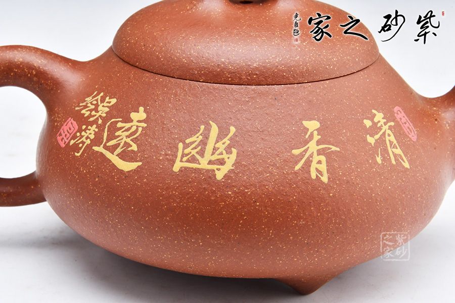 泥性:原礦因含緞泥、紅泥、紫泥等諸多共生礦,陶之后,于深沉之“橙紅色”底上,滿佈五彩斑斕的粗細(xì)、深淺之紅、黃星斑點(diǎn)。